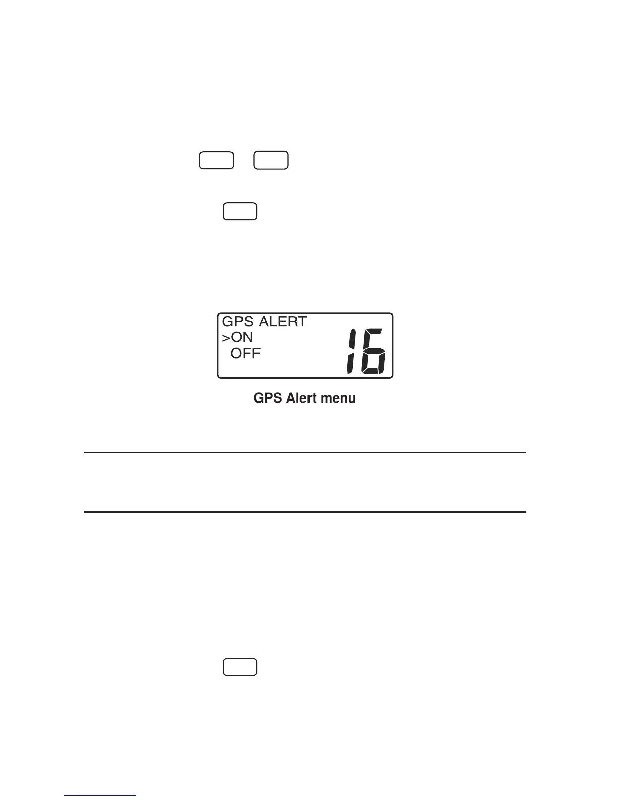 • Rotate the SELECT/ENT knob to position the cursor on the GPS ALERT