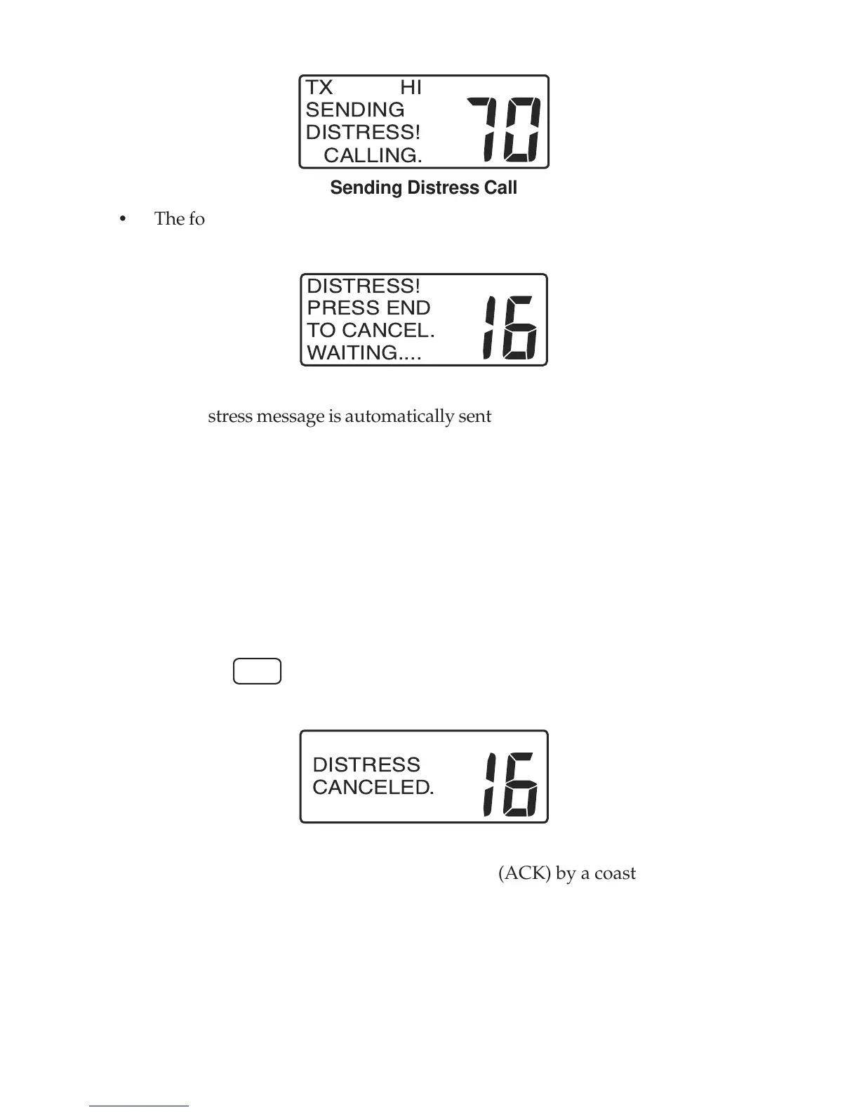 • If your DSC distress call is acknowledged (ACK) by a coast station, the