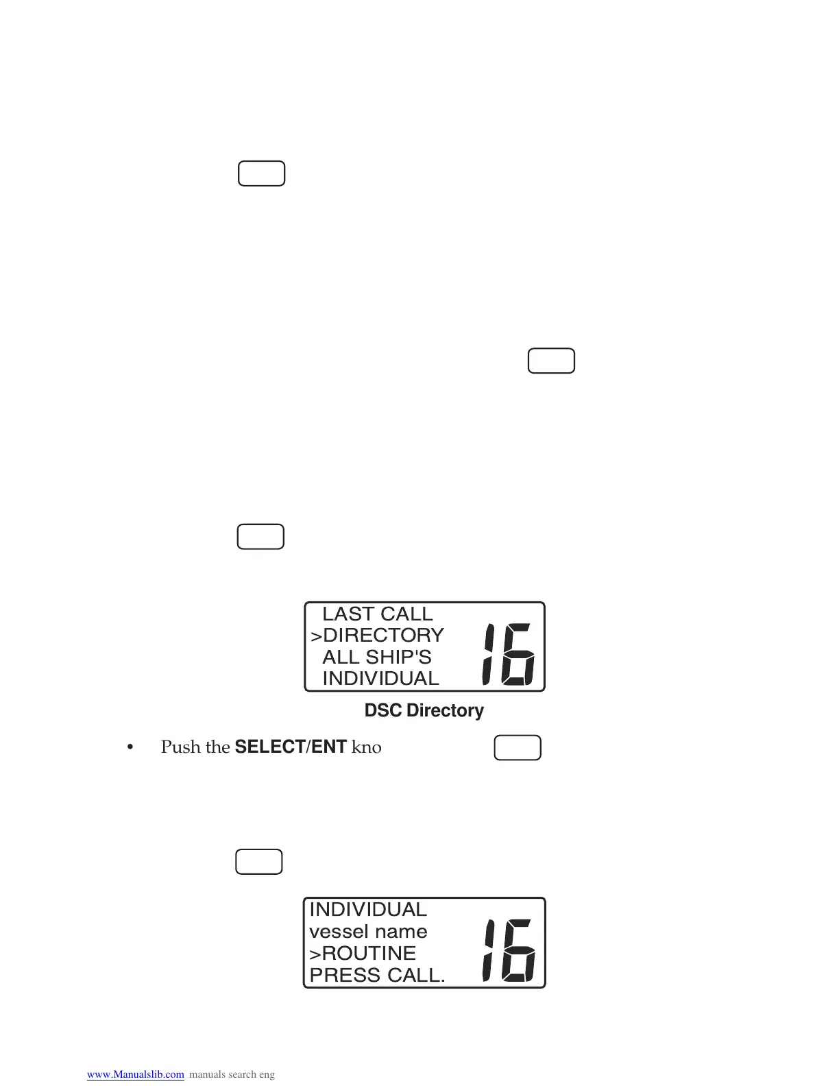 • Push the SELECT/ENT knob or press the