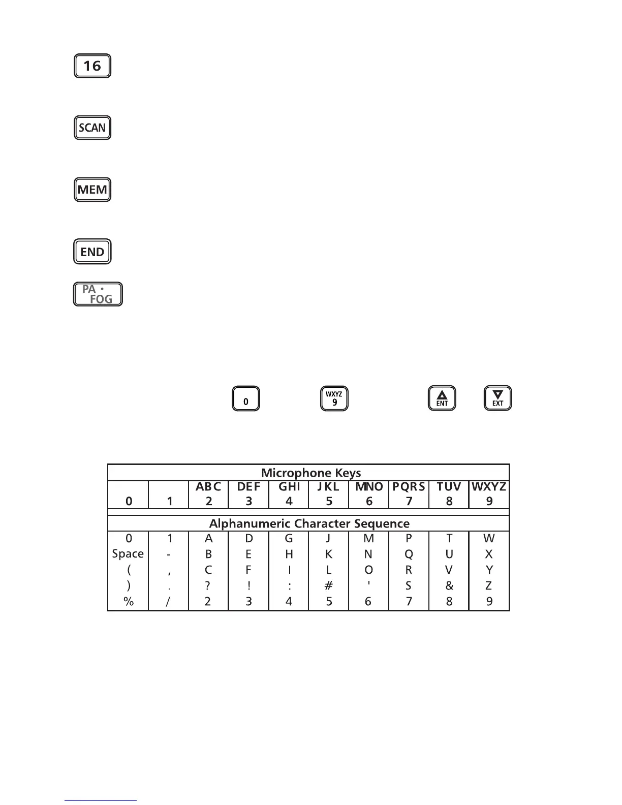 step or scroll to a new channel. The microphone keys are used to enter alphanumeric