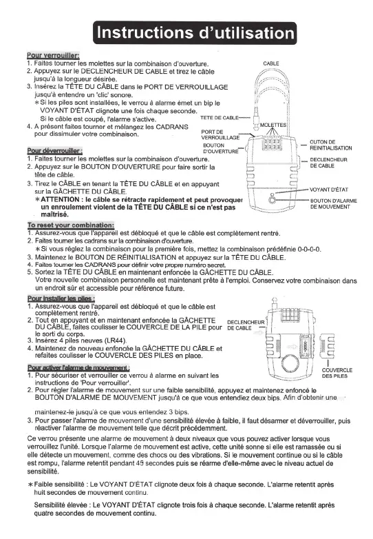 sensibilité plus élevée, faites 2 appuis longs sur le bouton BOUTON D`ALARME DE MOUVEMENT et