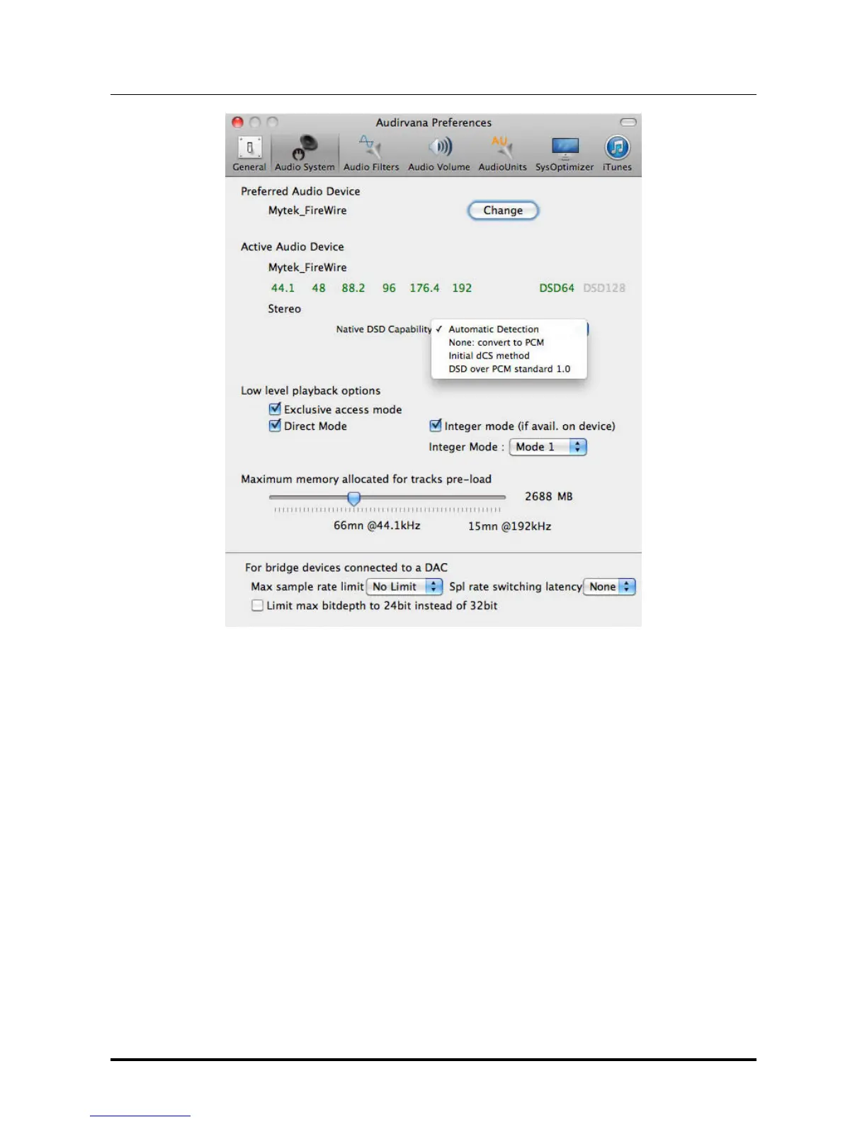 output device. This can be done accessing the audio management window and setting the