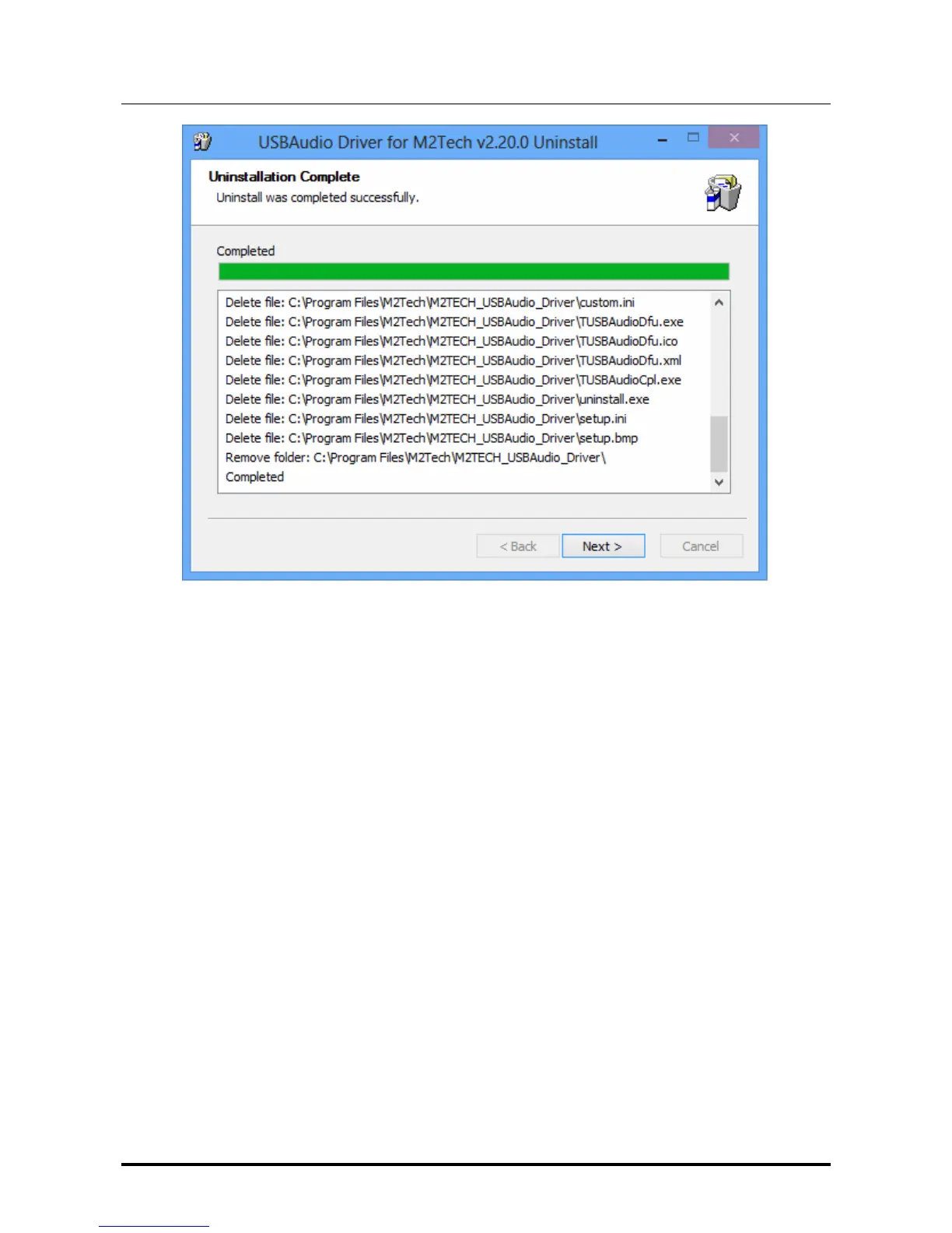 Click on the “Next” button to confirm uninstall completion and to close the uninstall utility.
