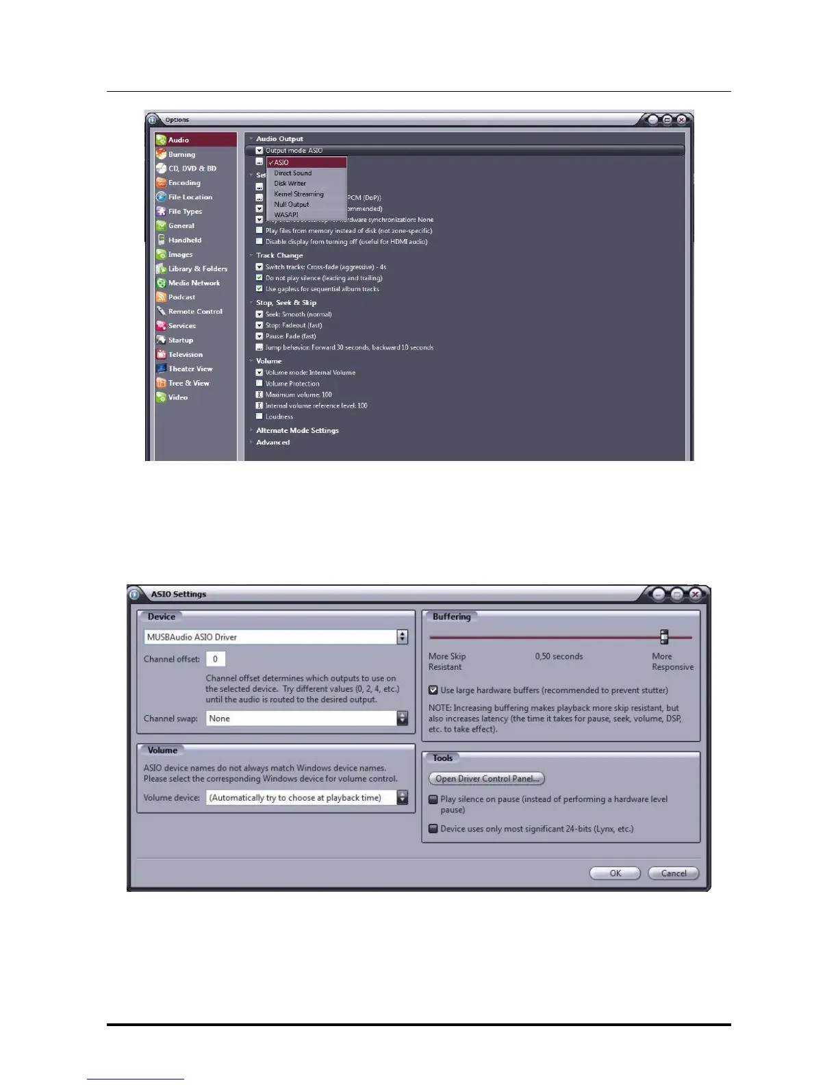 which is obviously dedicated to ASIO, and select the “MUSBAudio ASIO Driver”, as shown
