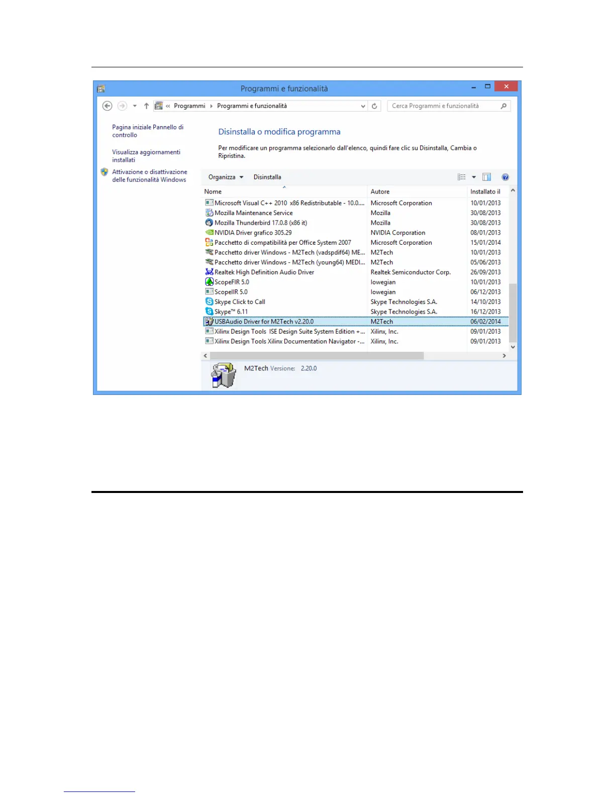 By double-clicking “USB Audio Driver for M2Tech…” the uninstall application is