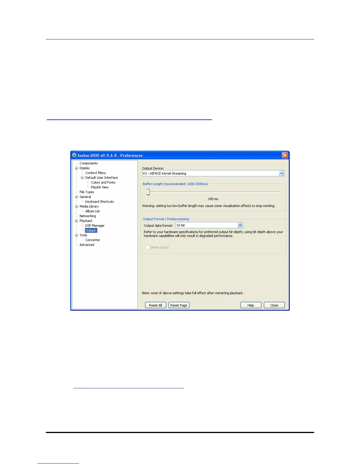 To use FooBar in KS mode it is necessary to download the DLL for Kernel Streaming from