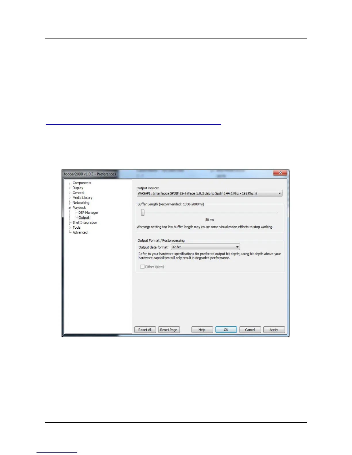 Then, restart FooBar, go to the File/Preferences/Playback/Output window and set