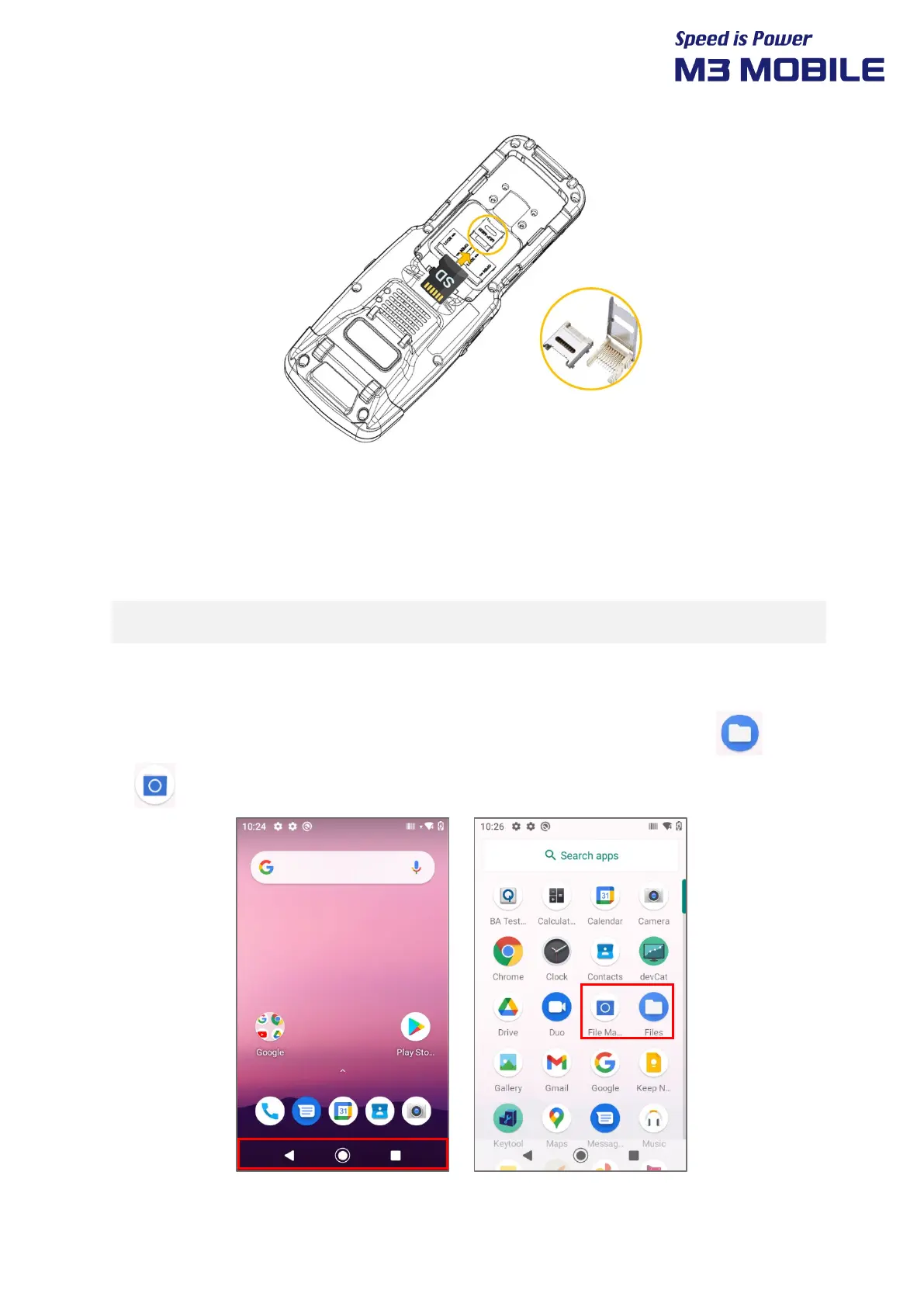 Android™ 10, the OS used in M3 US20, can support up to 512 GB for external memory.
