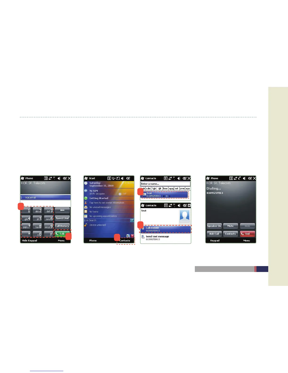 Enter the phone number with keypad in the main screen and press the ‘Call’ button.•