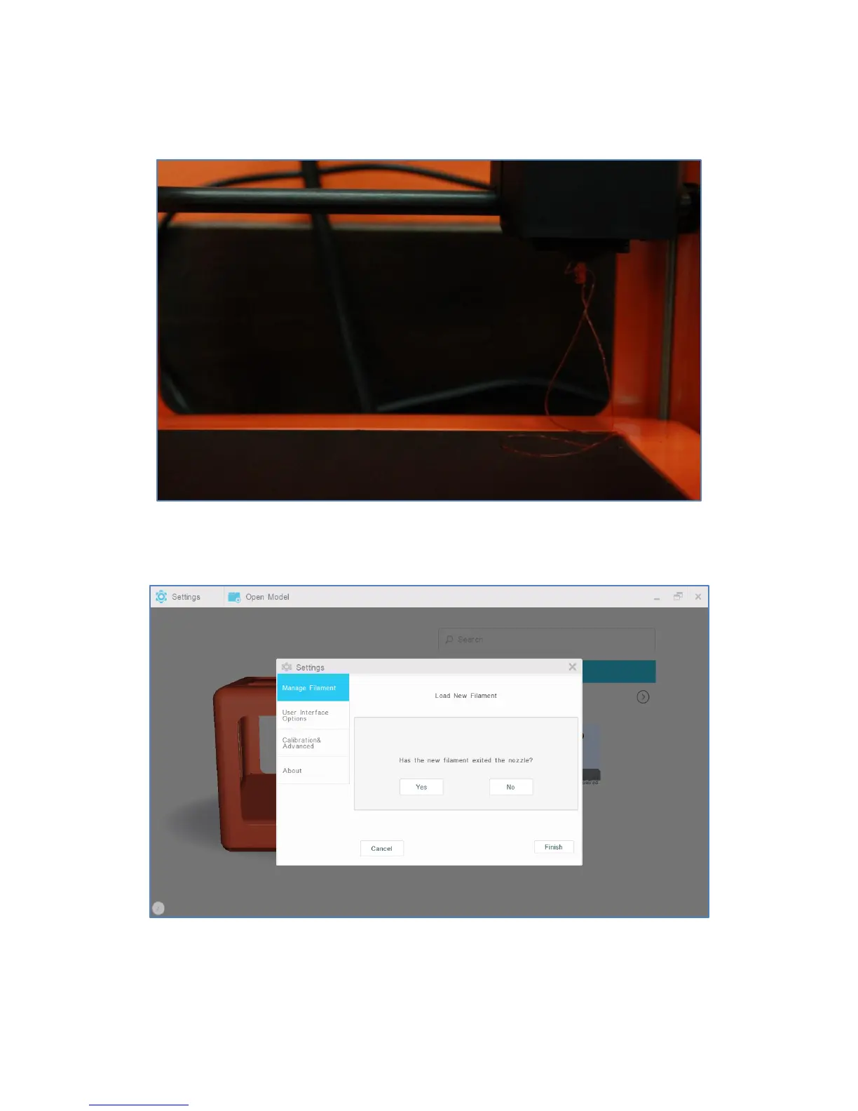 7. If filament has not exited the nozzle, select “No” and retry filament loading steps again; it may take