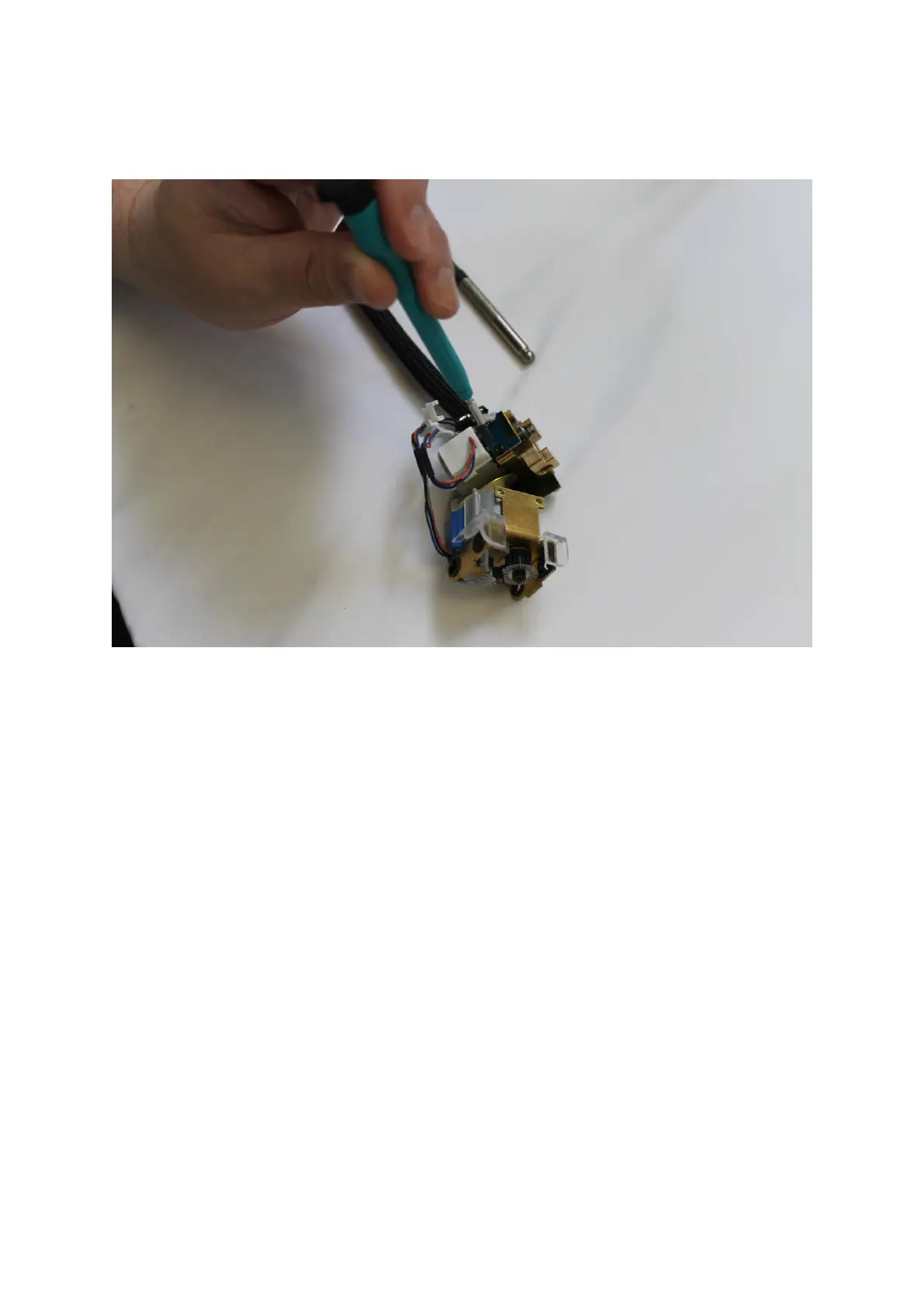 Step 15: Remove the screw that holds the extruder encoder to loosen it as shown in