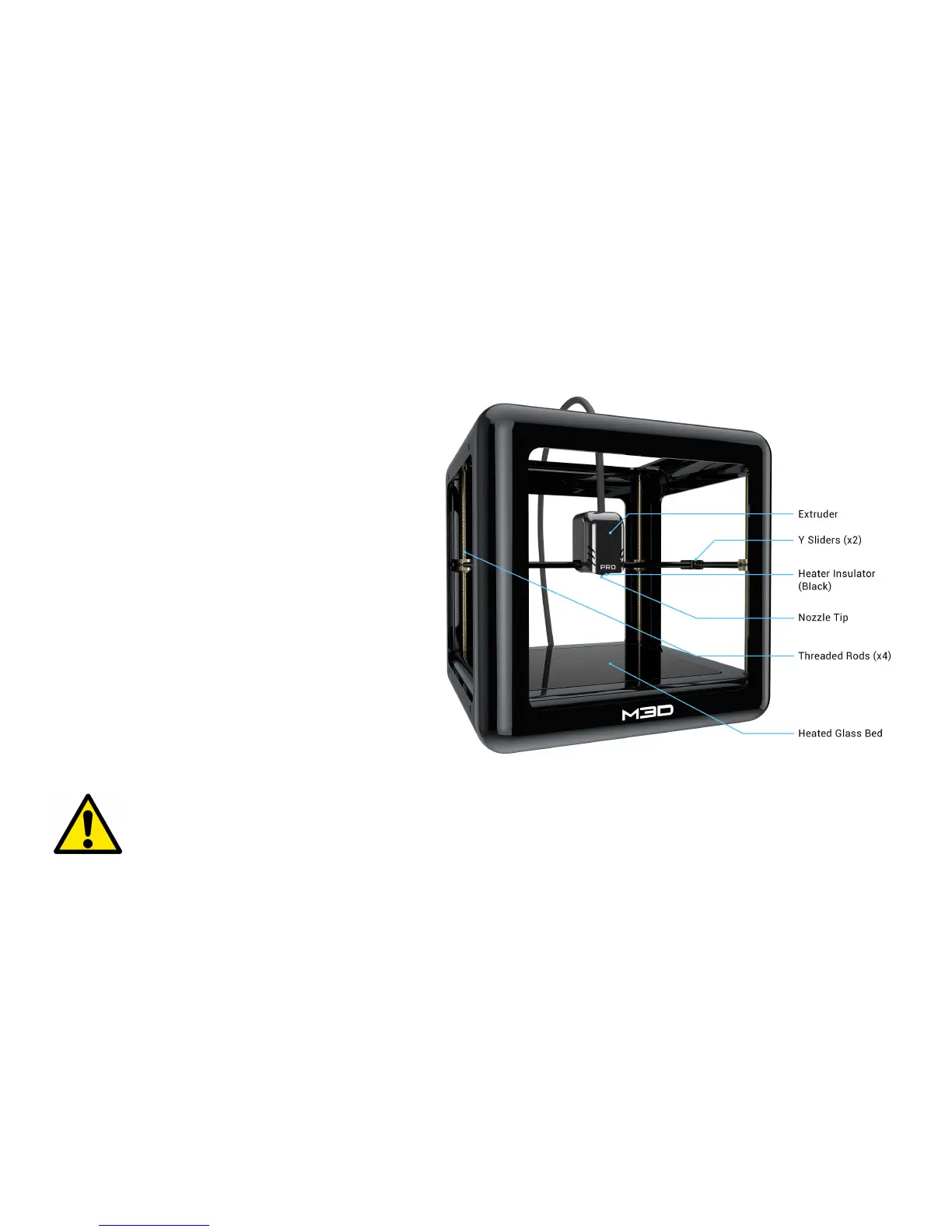 Caution: Hot! Keep your fingers away from the Nozzle Tip and Black Insulator when the printer is on as these areas reach