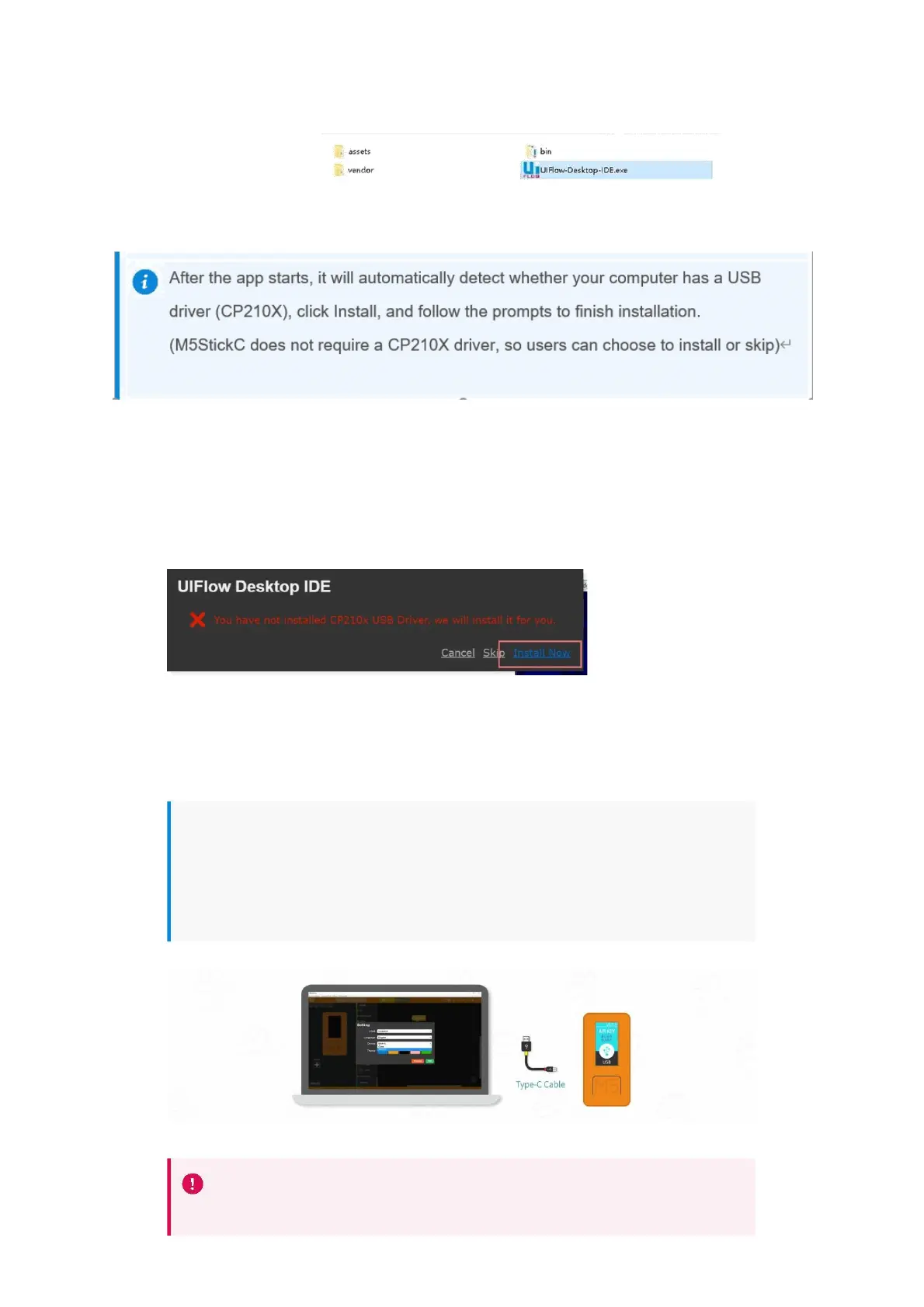 (M5StickC does not require a CP210X driver, so users can choose to install or skip)