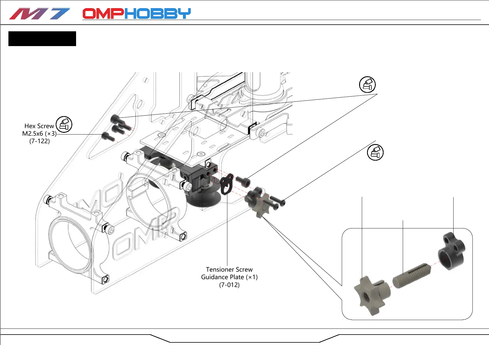 M7 OMPHOBBY - Installation of the Tensioner Screw; Tensioner Assembly
