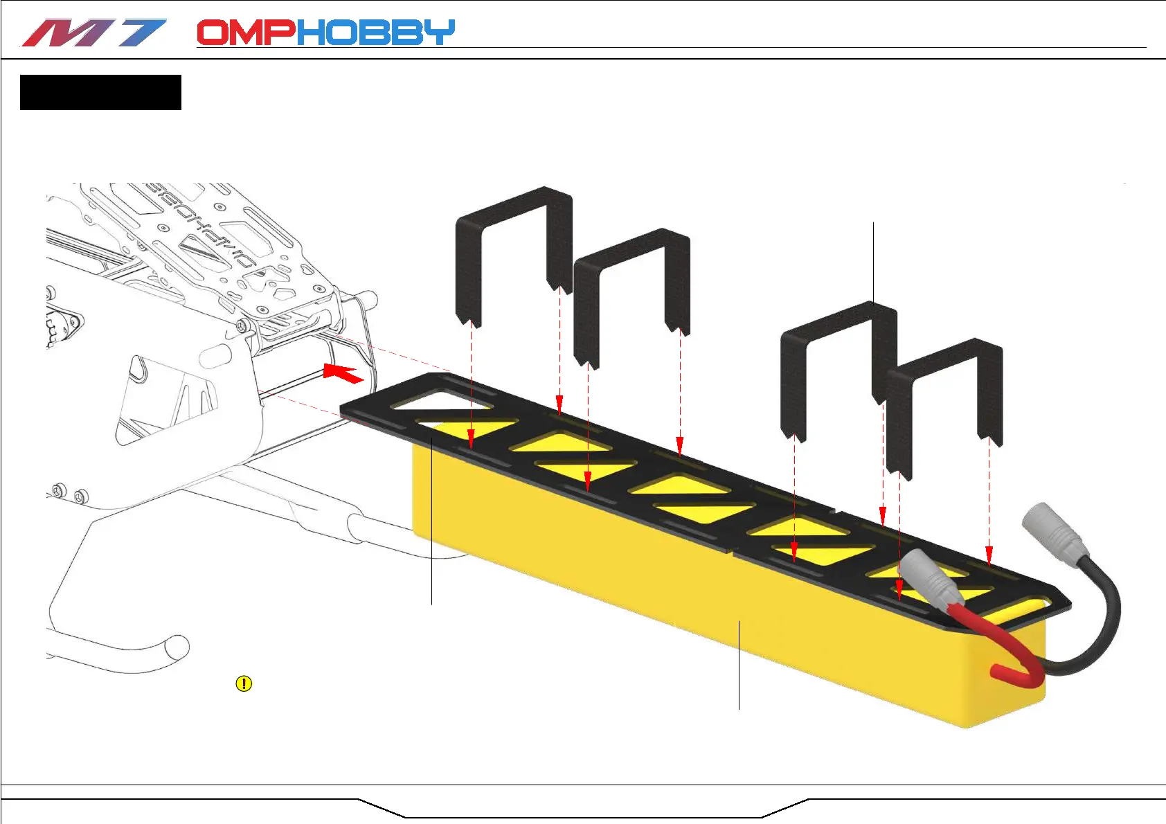 M7 OMPHOBBY - Battery Installation; Battery Tray and Strap Installation