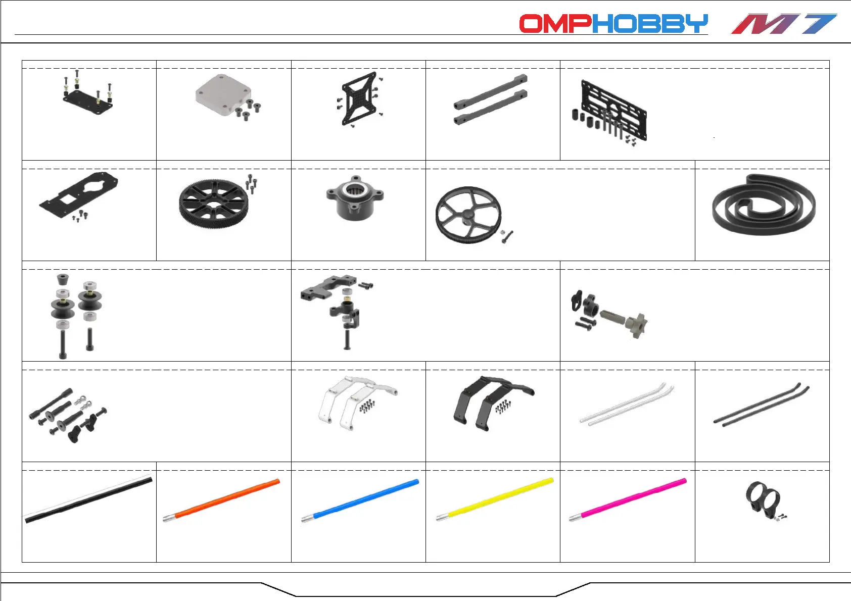 Carbon Tail Boom (×1) (7-088J) Color Tail Boom (×1) (7-214O) Color Tail Boom (×1) (214G) Color Tail Boom (×1) (7-214Y) Color Tail Boom (×1) (7-214P)