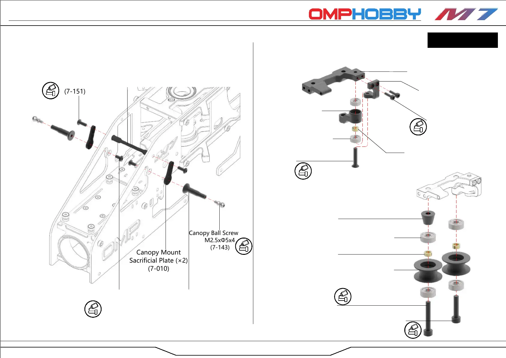 M7 OMPHOBBY - Canopy Mount and Tensioner Pulley