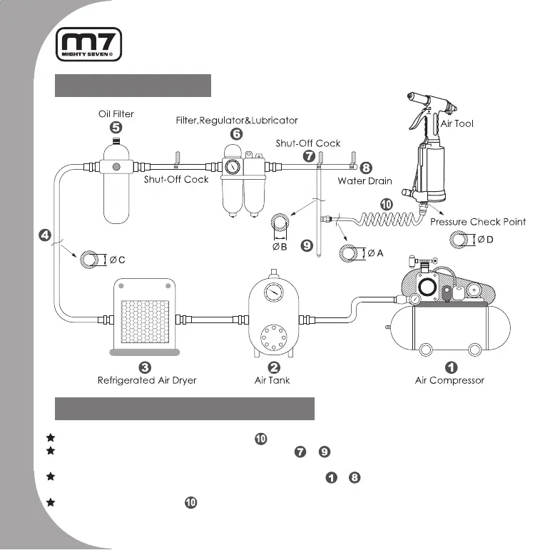 Piping diameters and length requirement: