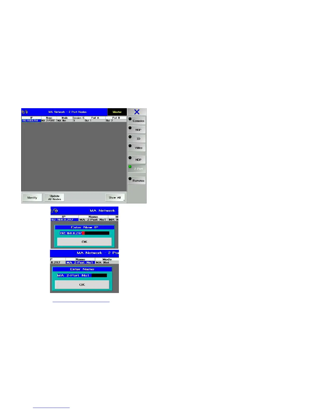 In the TOOLS / MA NETWORK CONFIGURATIONS / 2-PORT menu, select