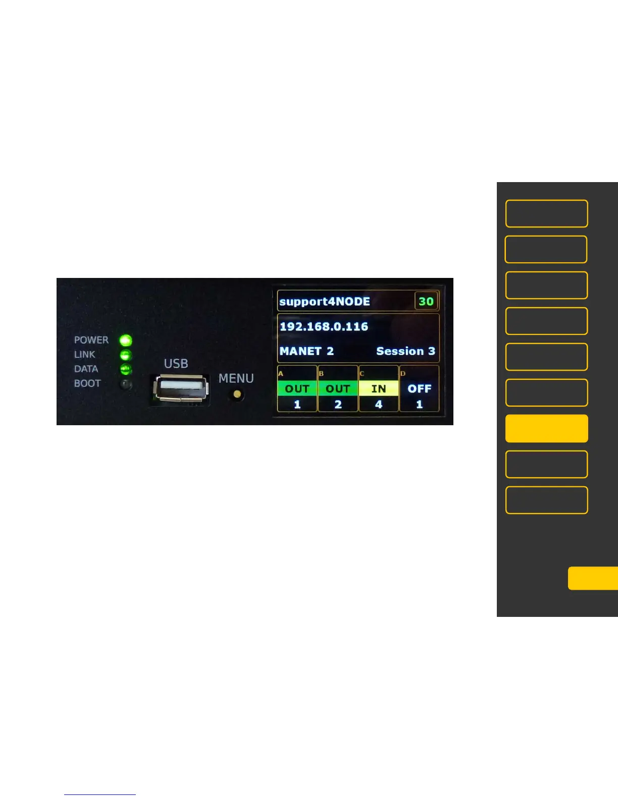 Das Display des MA 4Port Node zeigt lediglich die wichtigsten Einstellungen. Zum Konfigurieren ist unbedingt