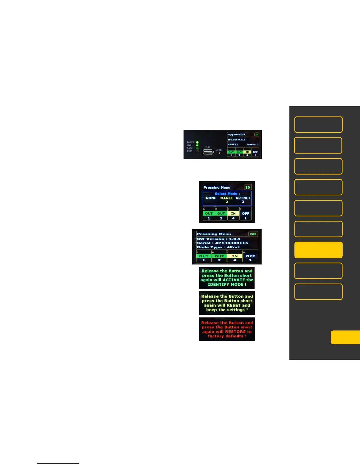 Reset Mode: Der MA 4Port Node wird zurückgesetzt, alle Einstellungen
