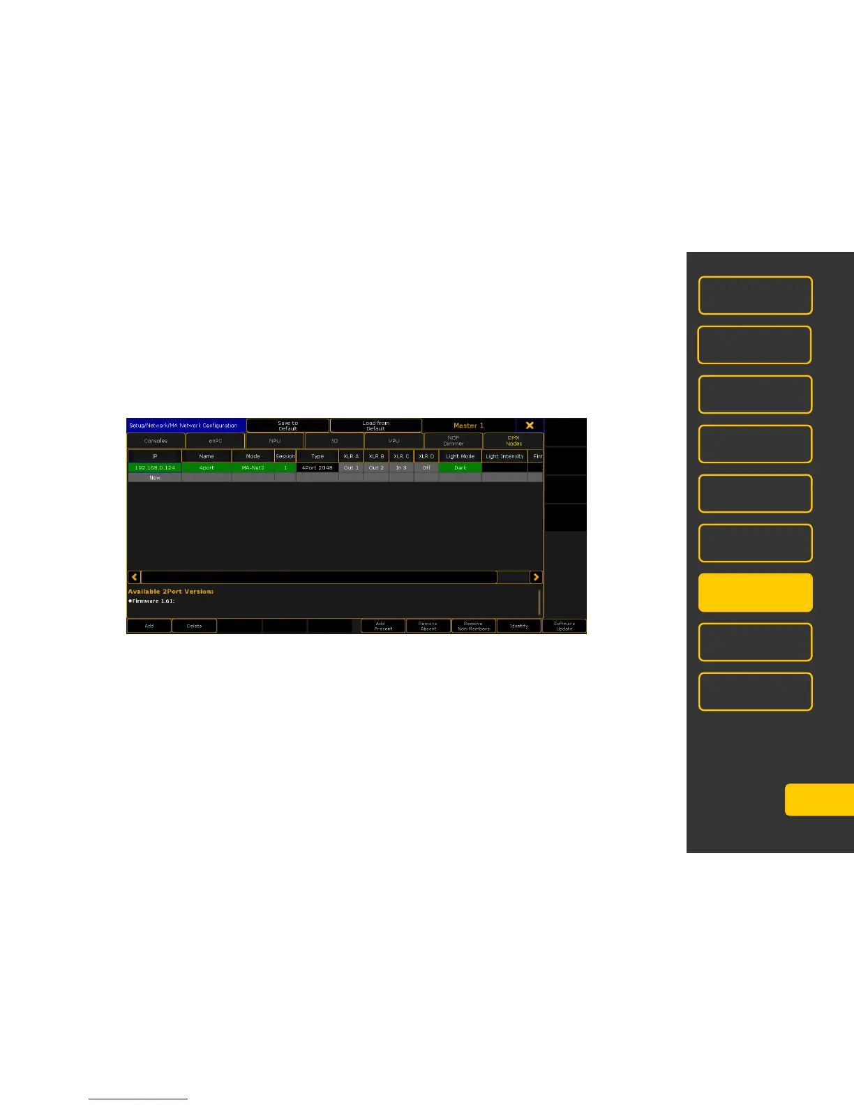 SETUP / NETWORK / MA NETWORK CONFIGURATION / DMX