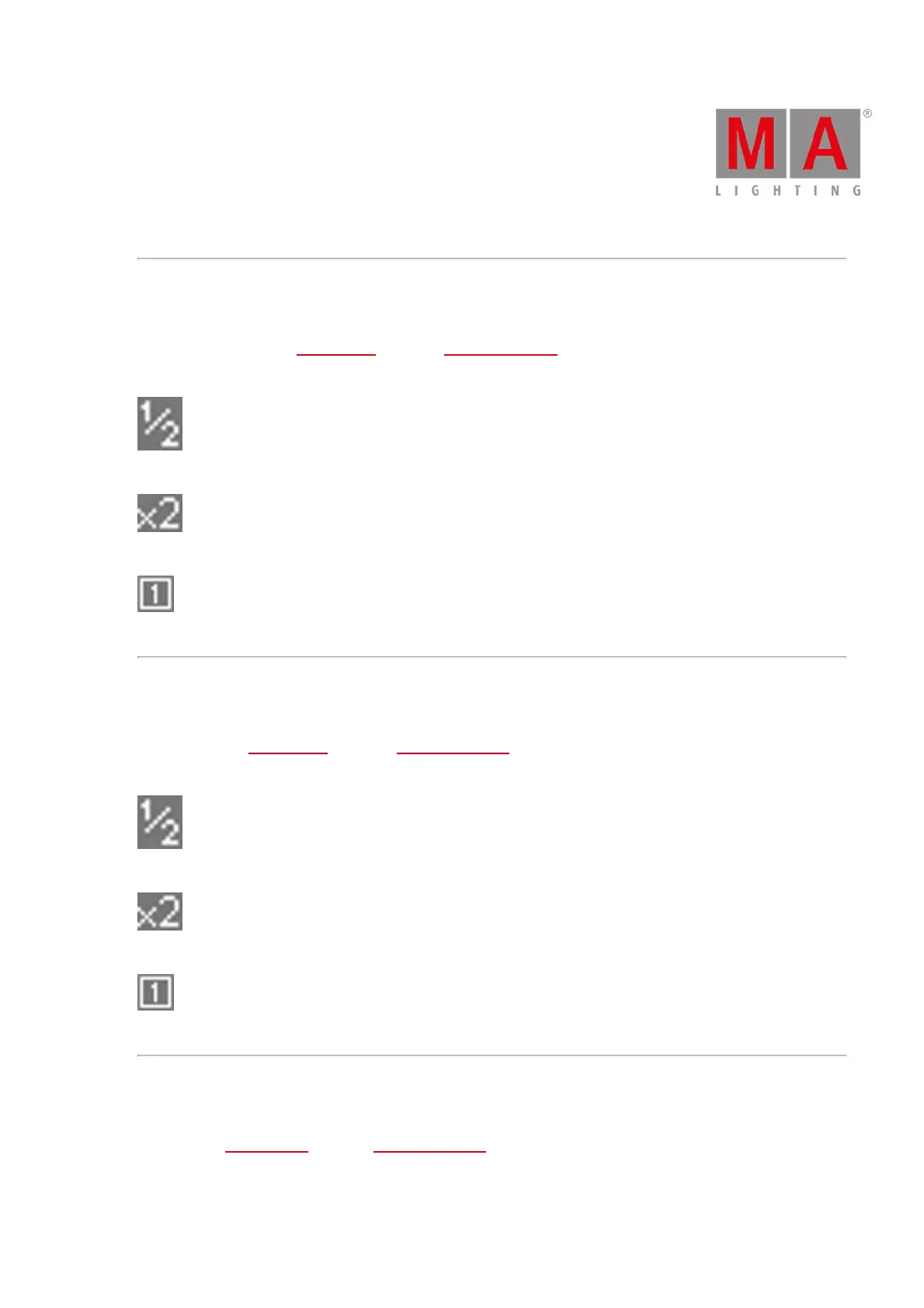 These icons display the function of the special masters, master rate respectively.