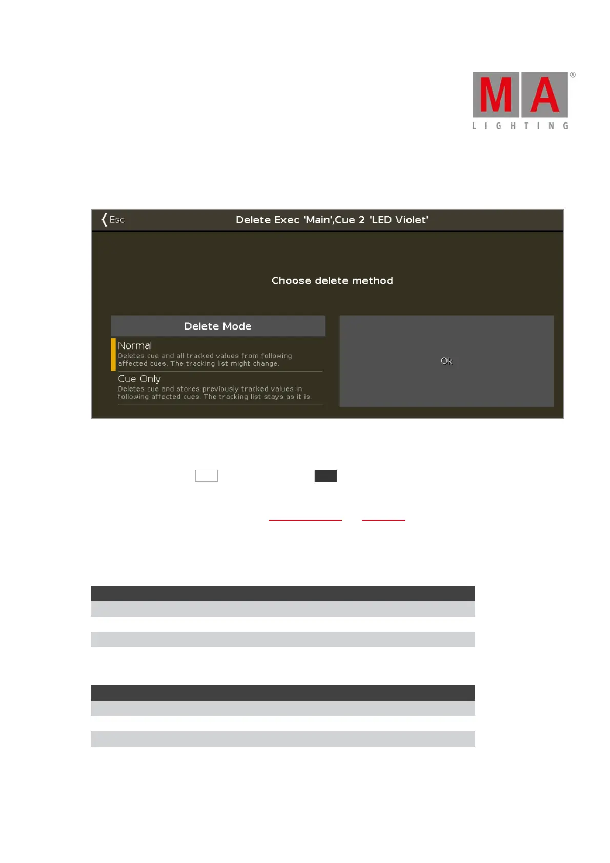 If you try to delete a cue from a cue list, the console ask to choose the delete method.