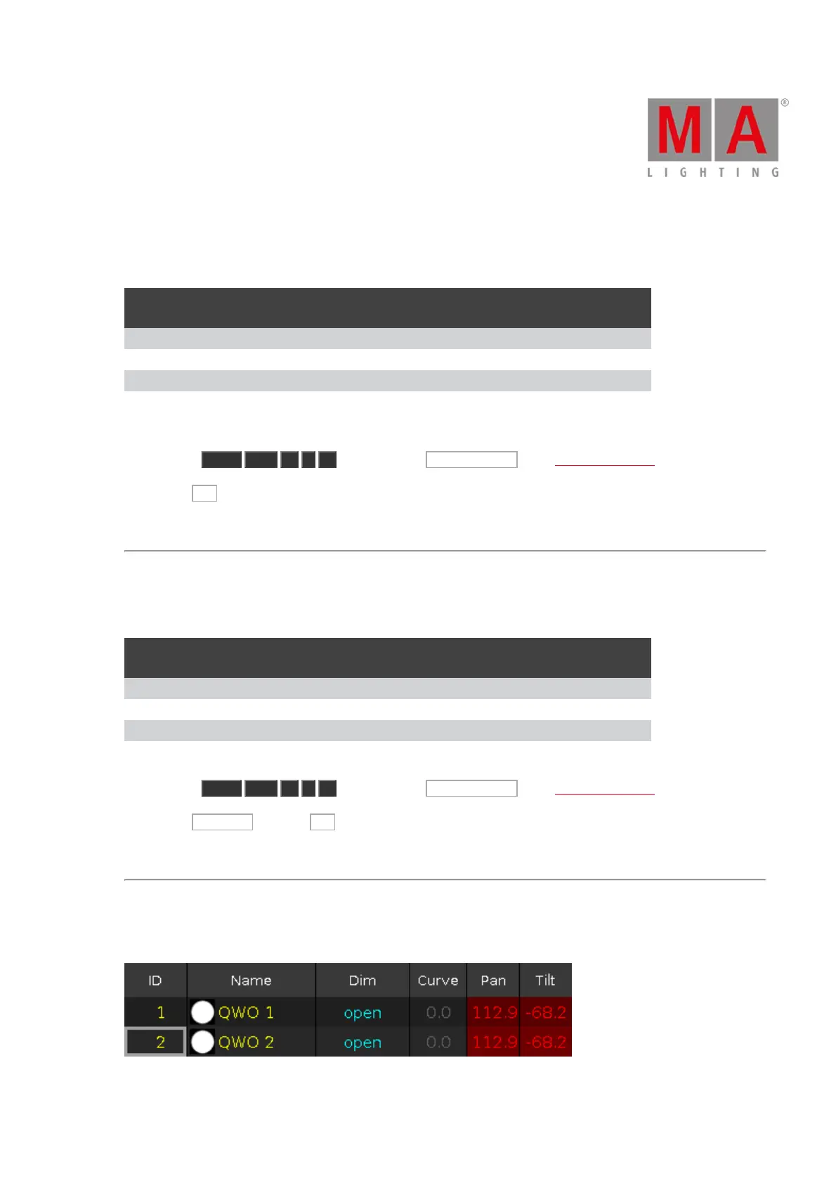 Cue 2.1 is stored between cue 2 and cue 3. Cue 3 is tracking the dimmer value from fixture 1.