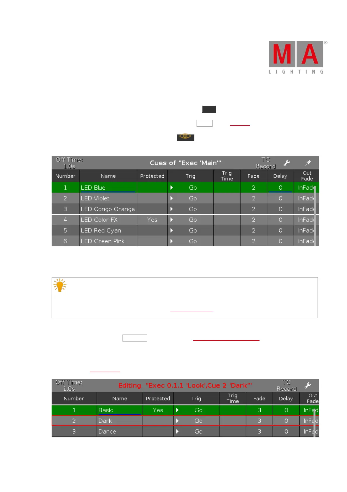 identical with the value of the previous cue will not be stored again in the cue list. This provides a clean