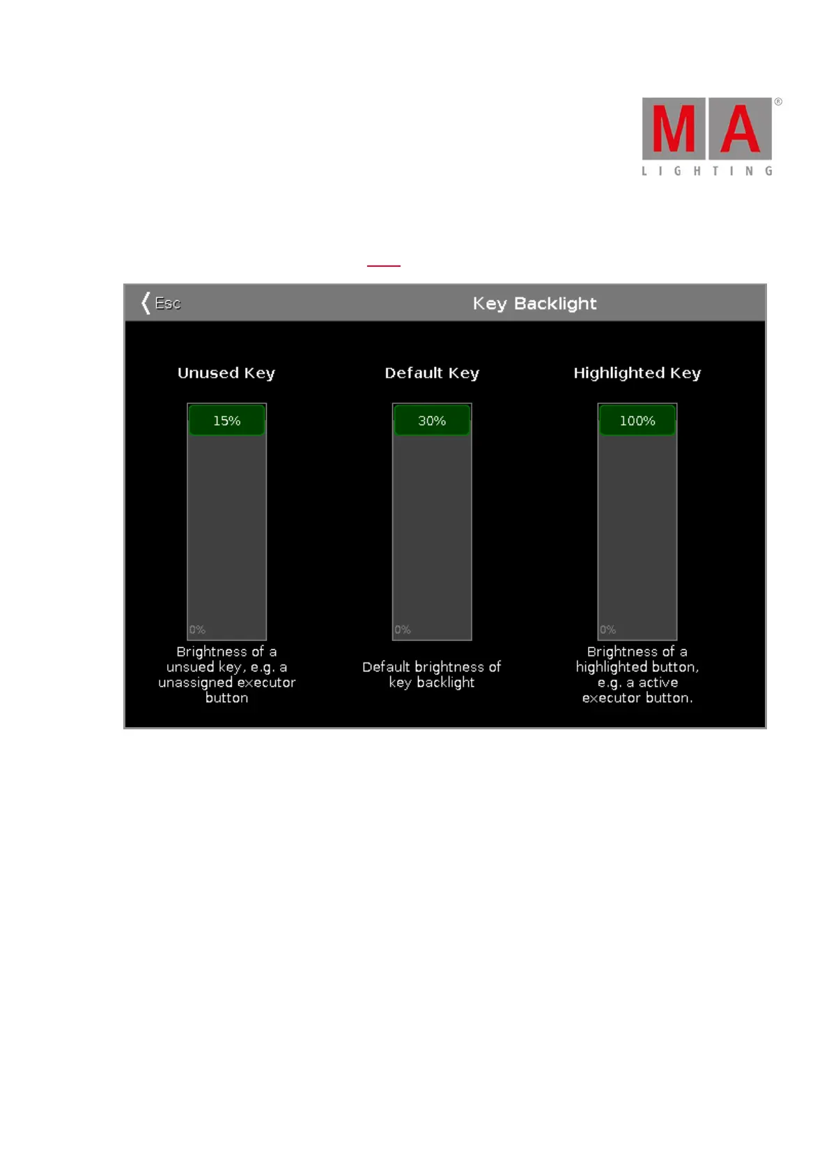 To select the brightness of the unassigned executor buttons, move the slider up or down.