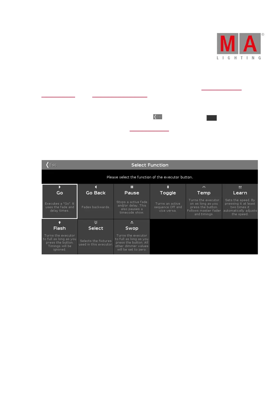 To get to the Select Function of Executor Window, press an assigned executor in the Change Functions of
