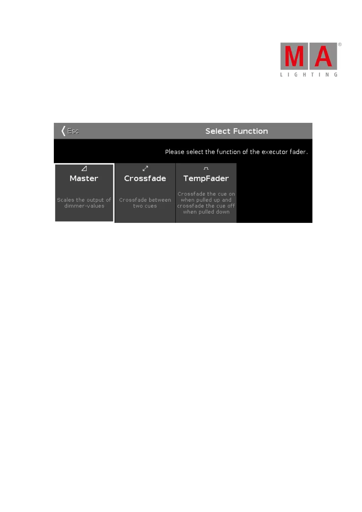 Figure 7: Select Function of Executor - Normal Fader Executor
