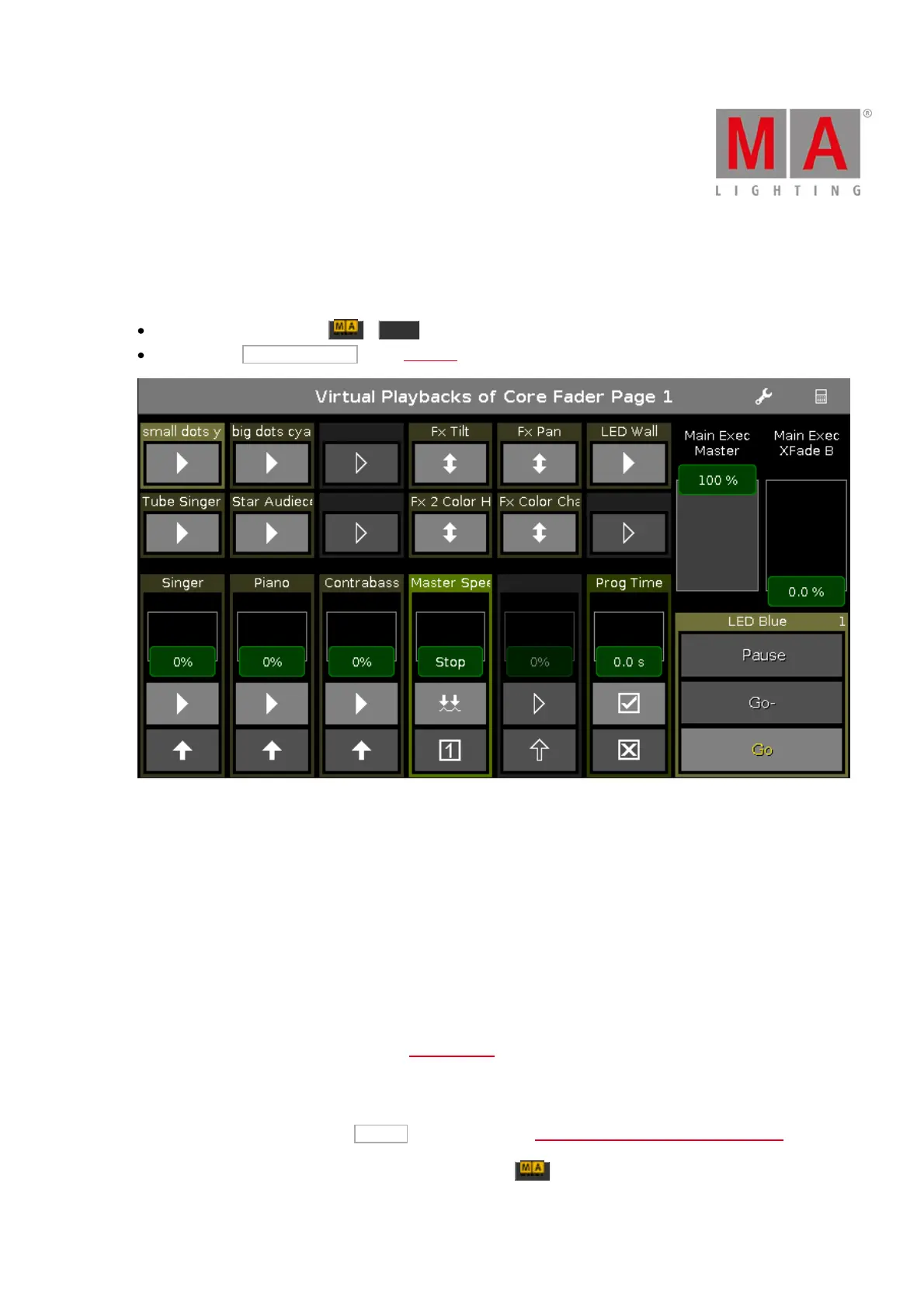 The icons on the virtual executor buttons displays by default the same as on the hardware executors.