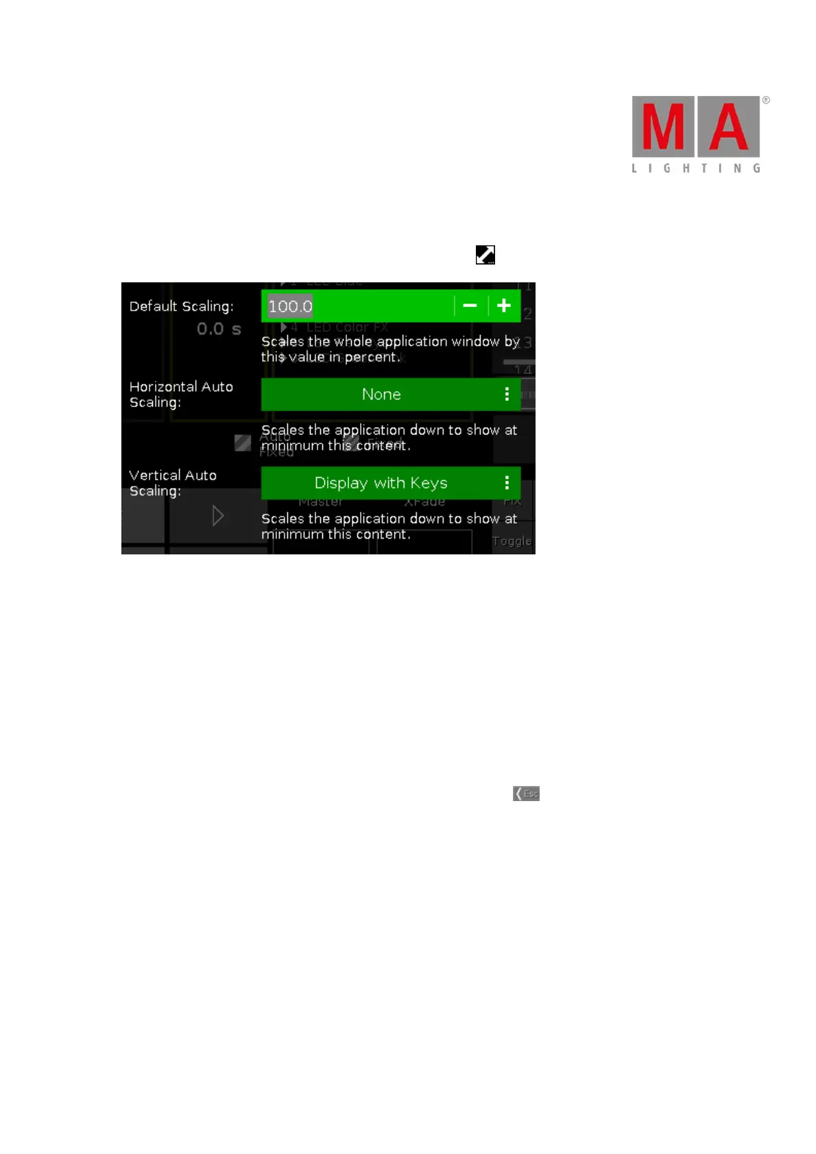 To open the dot2 onPC window settings, click a the scaling icon in the upper right corner of the dot2 onPC.