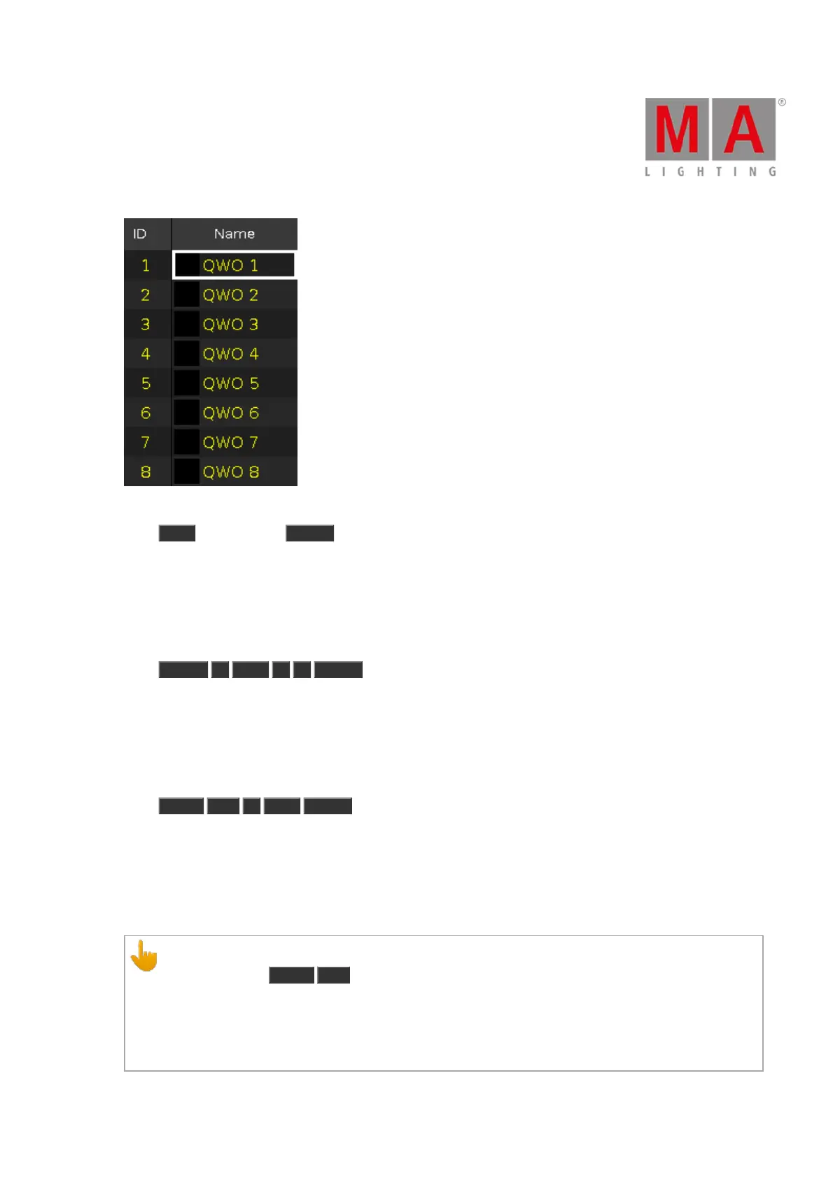 cue list.