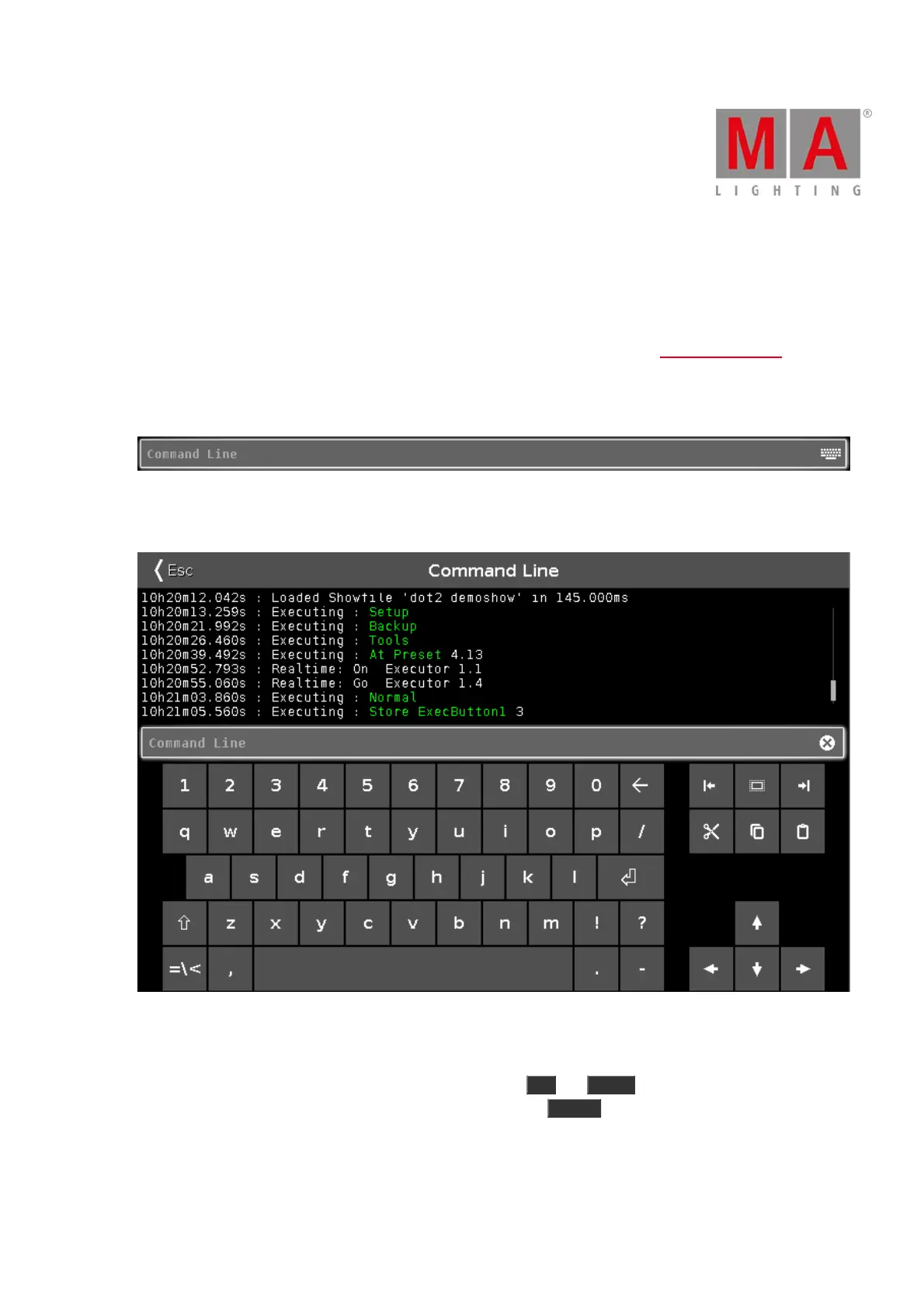 Here you can use the onscreen keyboard to type in the commands and you can see the command history and