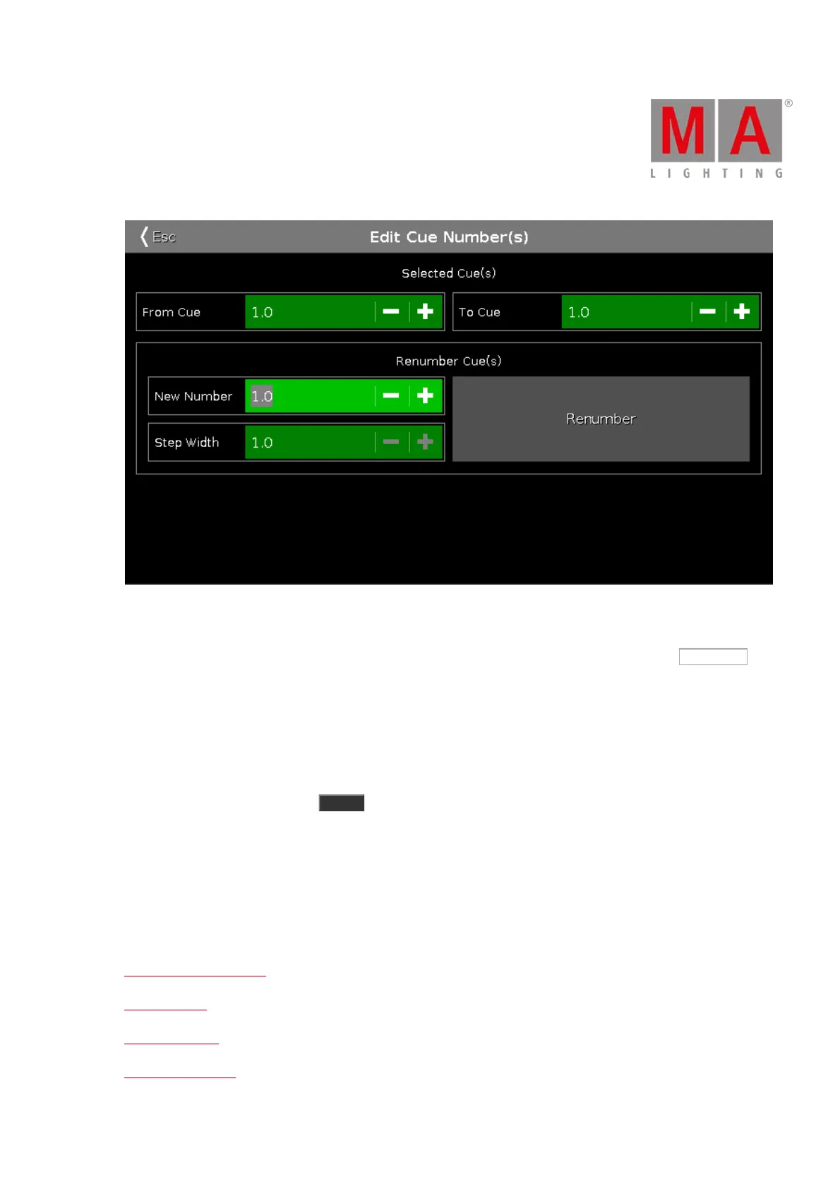 number and the step width for the cues. When you are happy with your settings, then you tap the Renumber