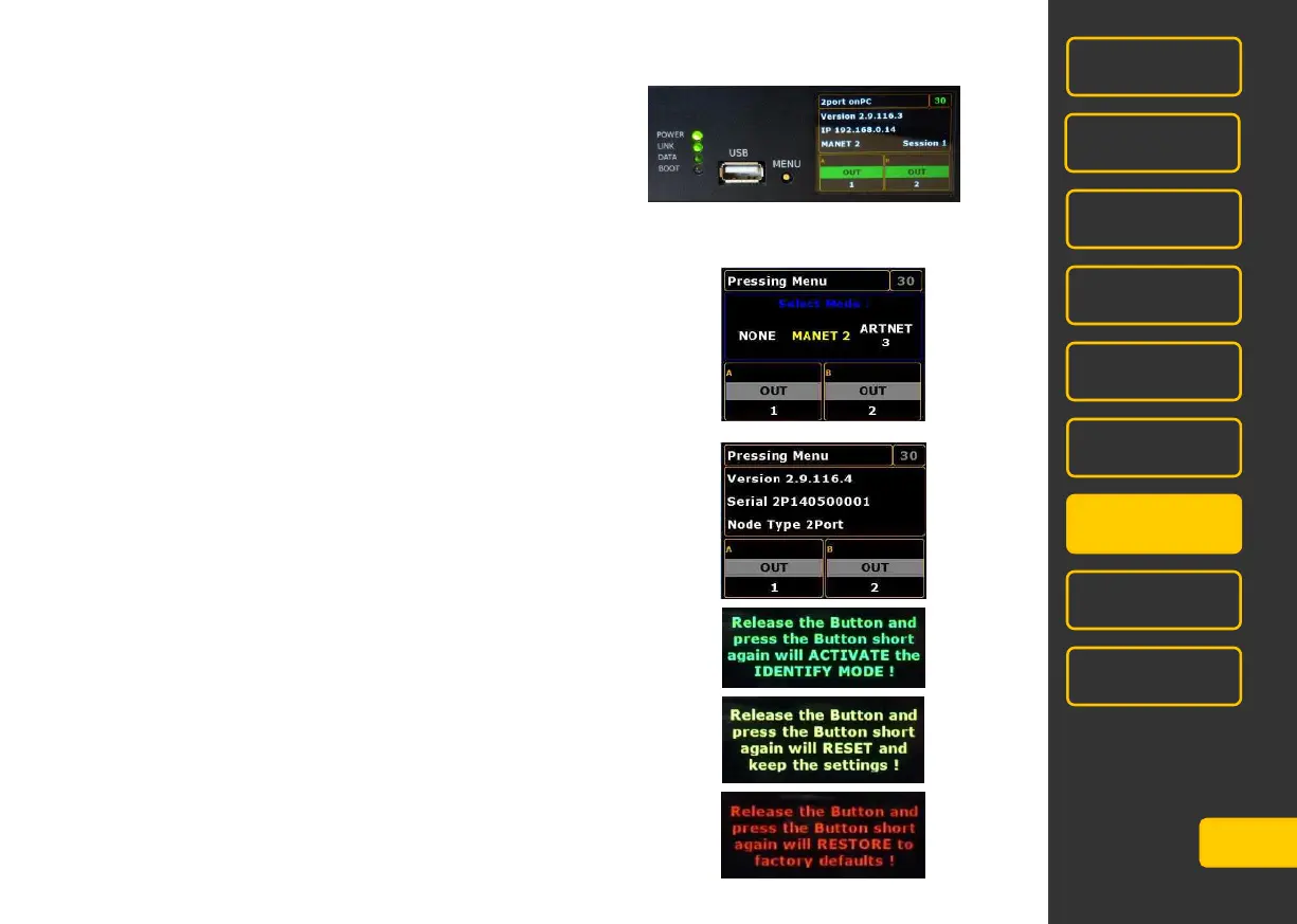 Identify Mode: identifies this MA 2Port Node by flashing the respective