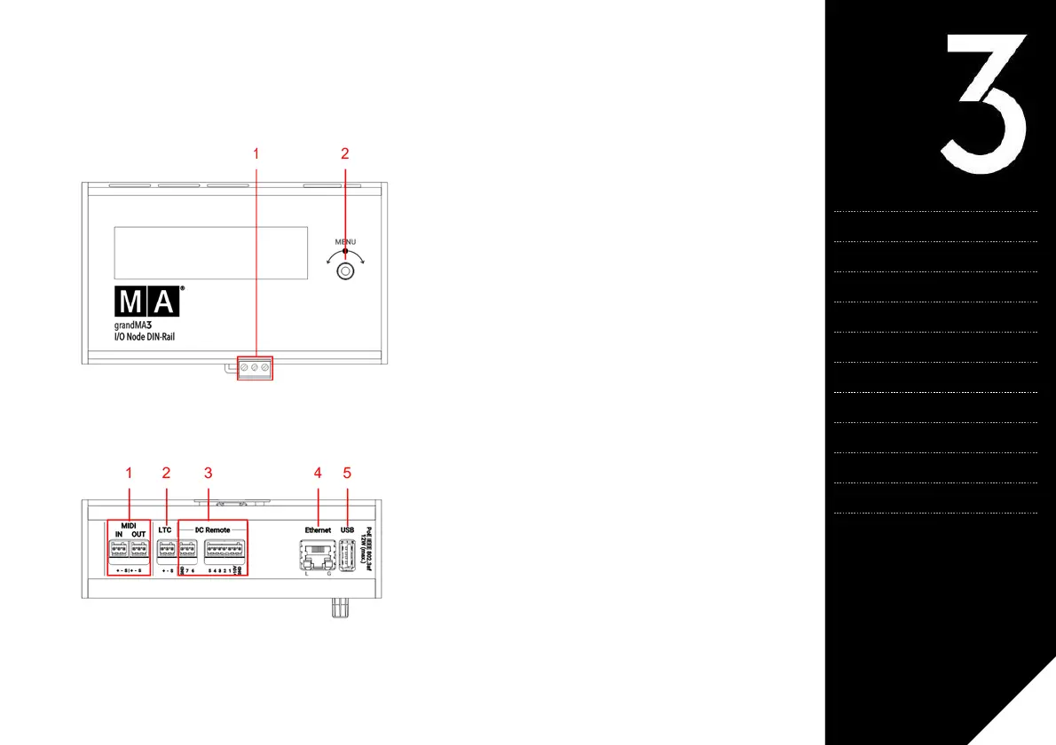 grandMA3 I/O Node DIN-Rail panneau arrière