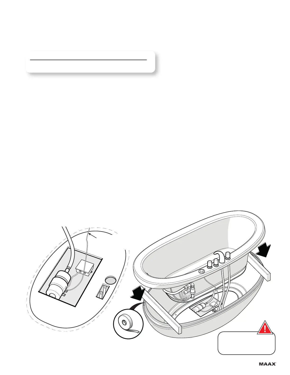 •AEROSENS system bathtub: make an opening in the floor to receive drain pipe and supply tubing. Make sure apron opening corresponds with floor