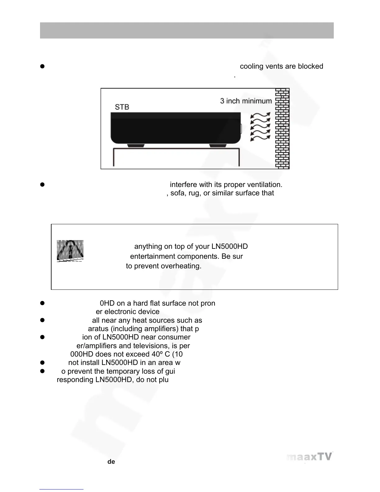 do not place LN5000HD on a bed, sofa, rug, or similar surface that could block the