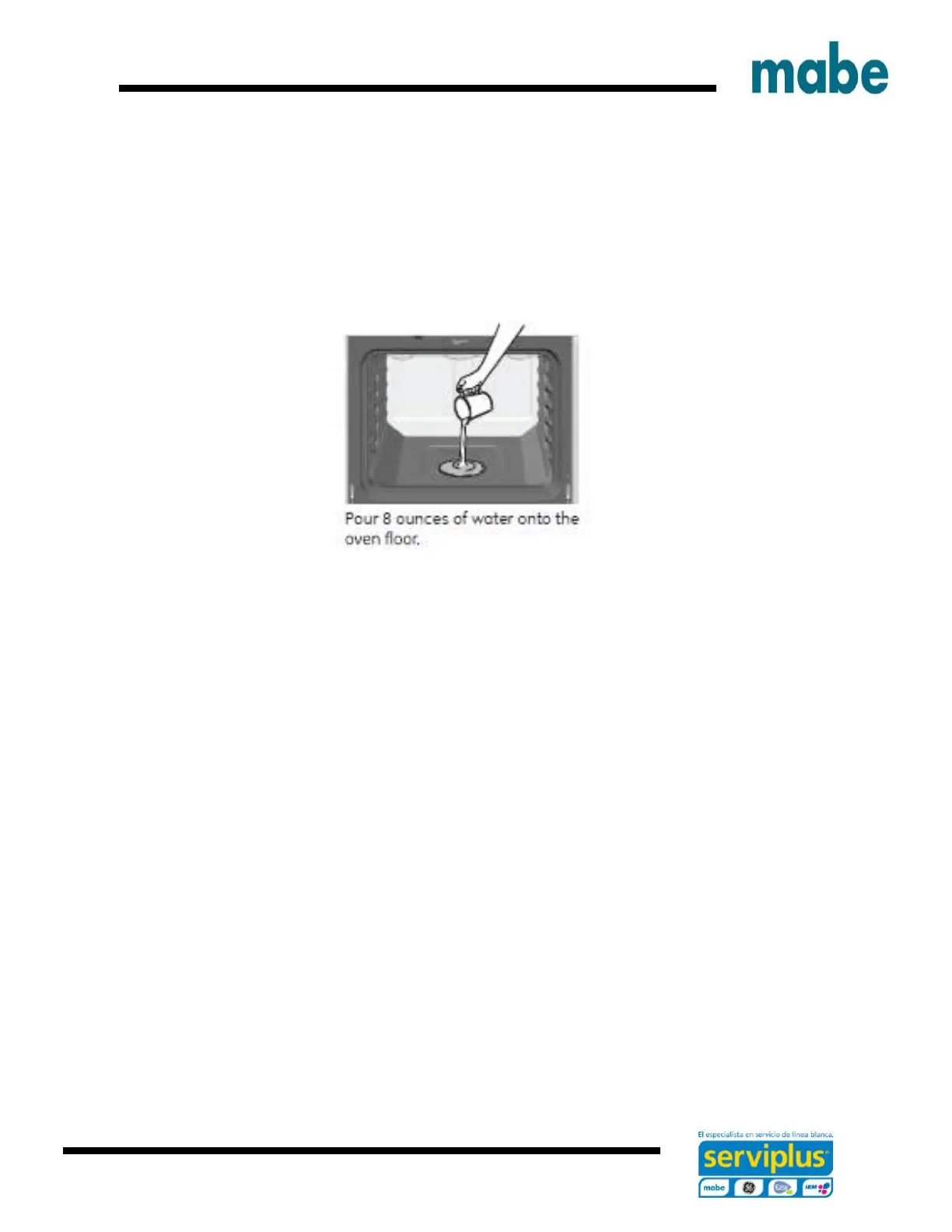 2. Pour a cup (8 oz) room temperature water onto the recessed area of the oven bottom. Do not