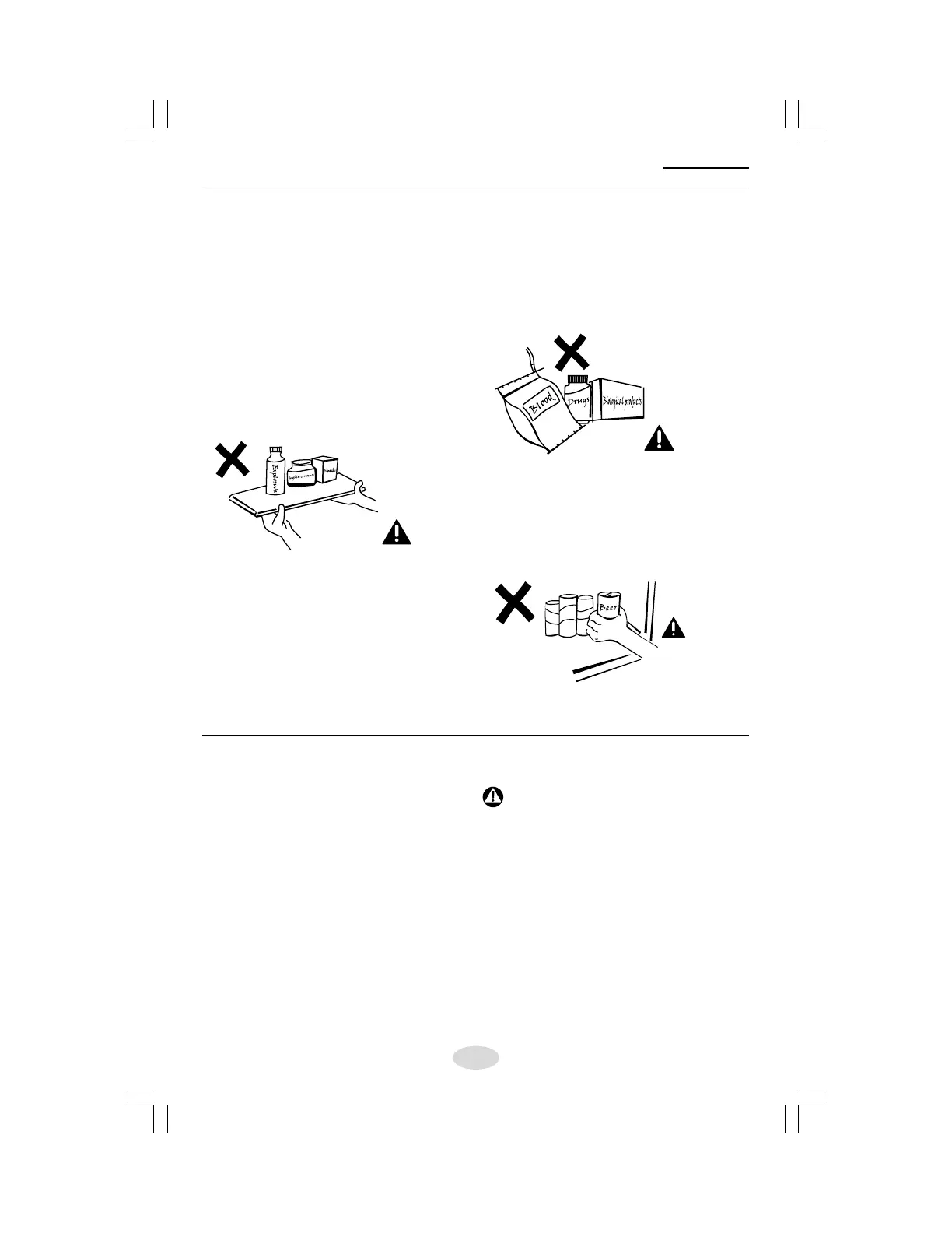 • Do not place items such as bottled