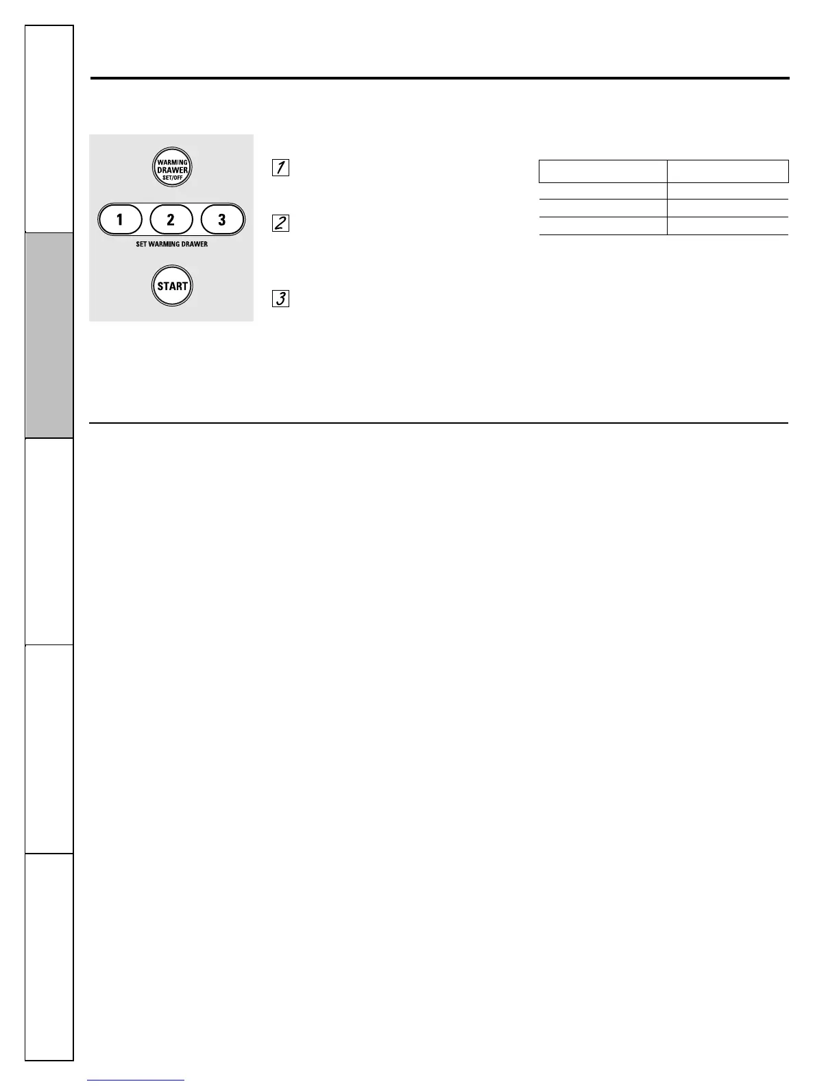 ■ The warming drawer has three settings: 1, 2 and 3.