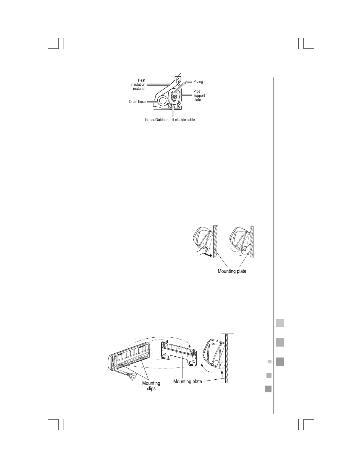 • Indoor/outdoor electric cable and drain hose must be bound with