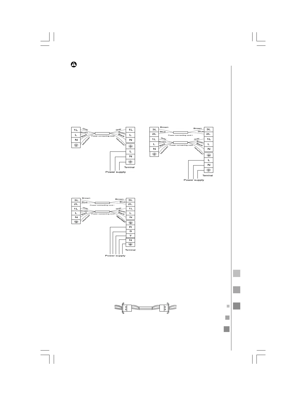 Note: All the wires may be different colors. The indicators "1L" "2L" "3L"