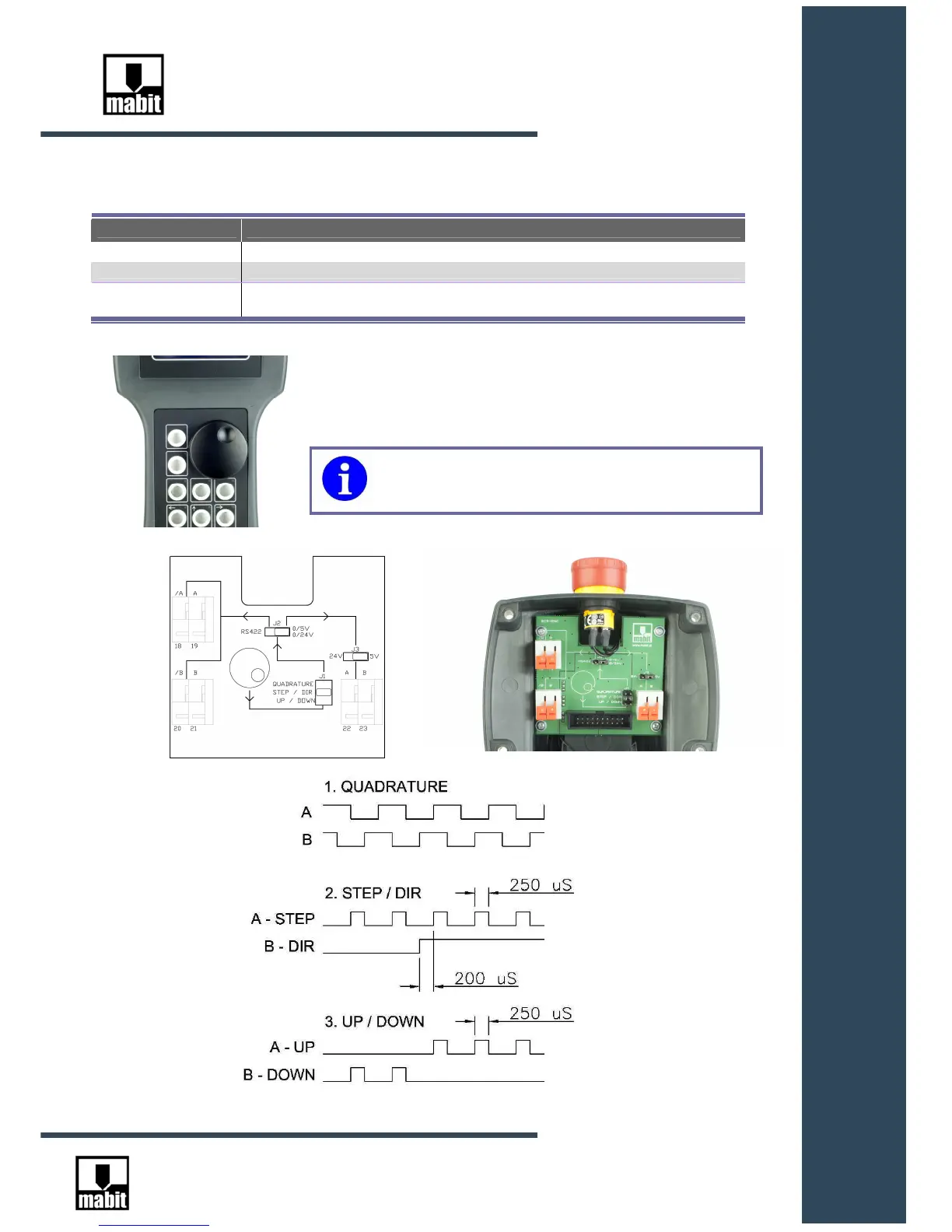Output types 1- Line driver RS422 2- 5V (push-pull) 3- 24V (push-pull) ( jumper-selectable )