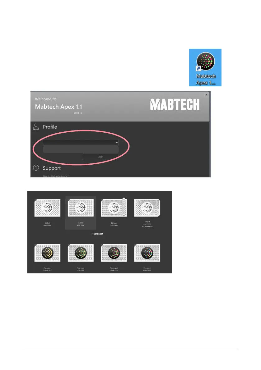 MABTECH IRIS FluoroSpot reader - Operating the Mabtech IRIS Reader; Software Launch, Login, and Assay Selection