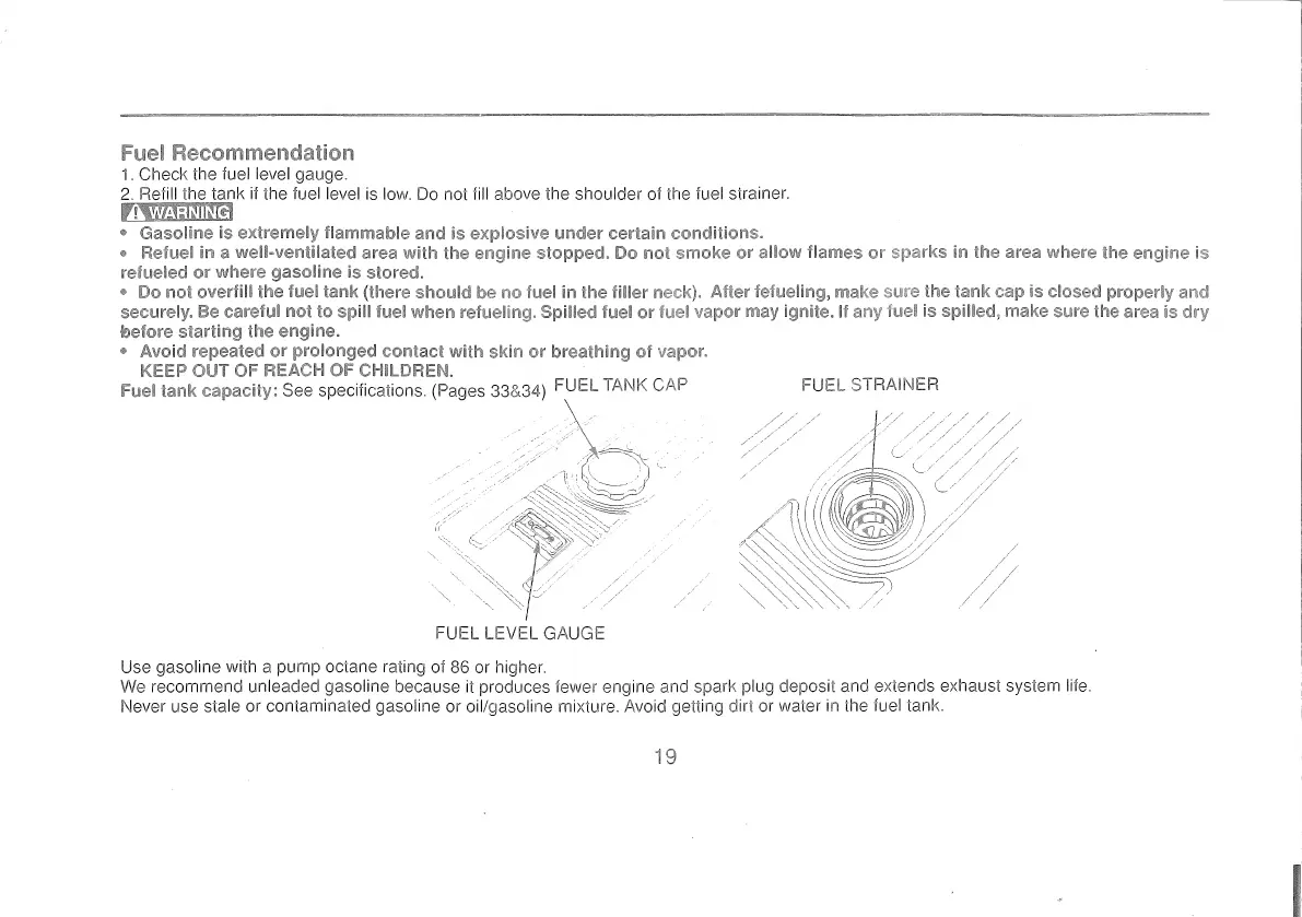 fuel level is low. Do not lill above the